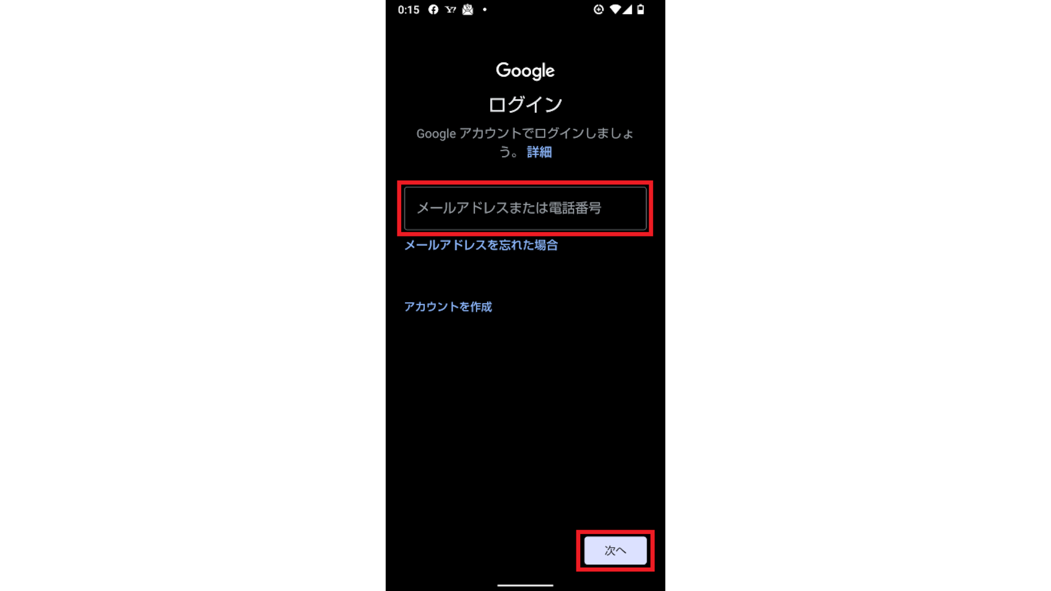 設定画面に移動して「アカウントを追加する」を選択し、「メールのセットアップ」から「Google」を選びます。