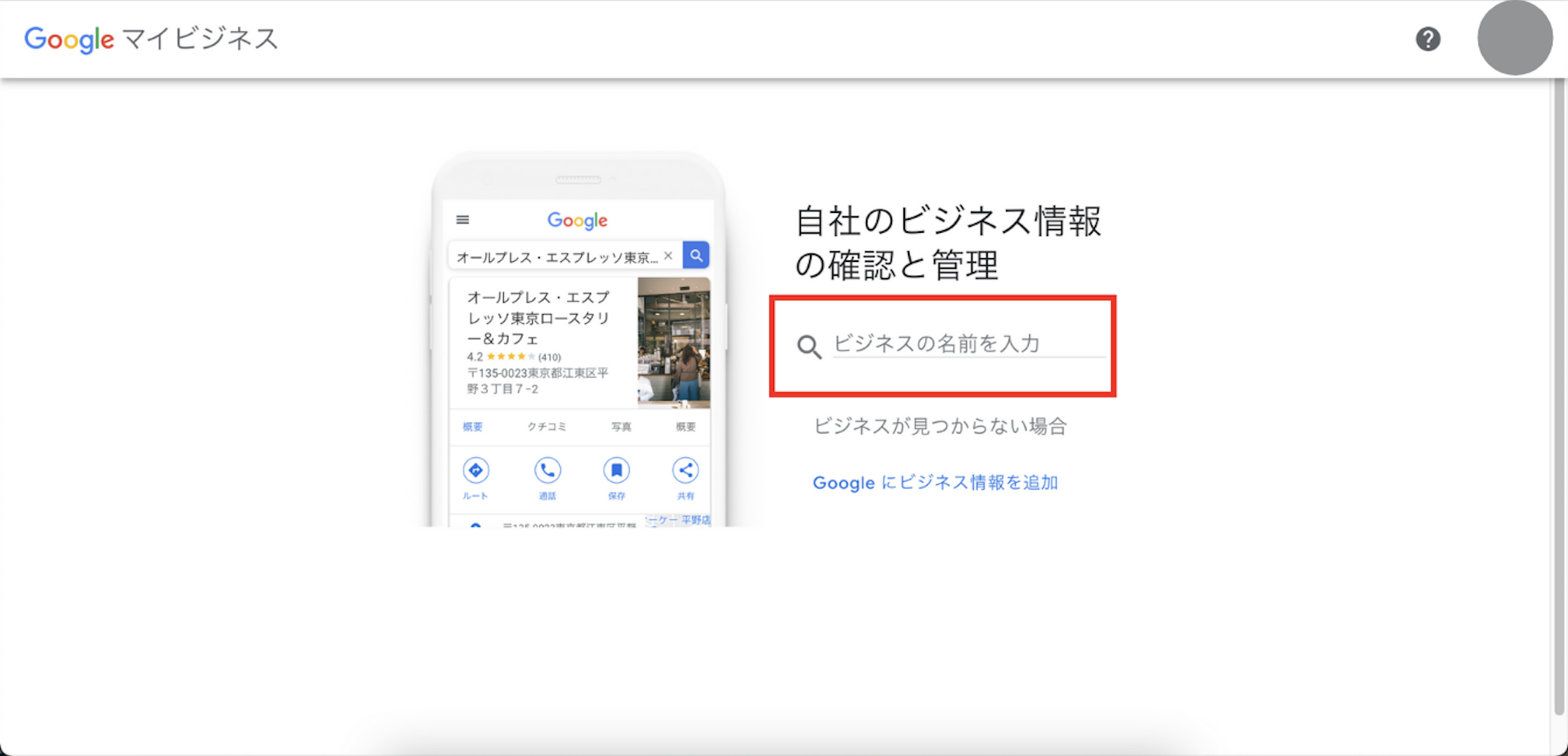 見つからない場合は、「Googleにビジネス情報を追加」を選択すると次に進むことができます。