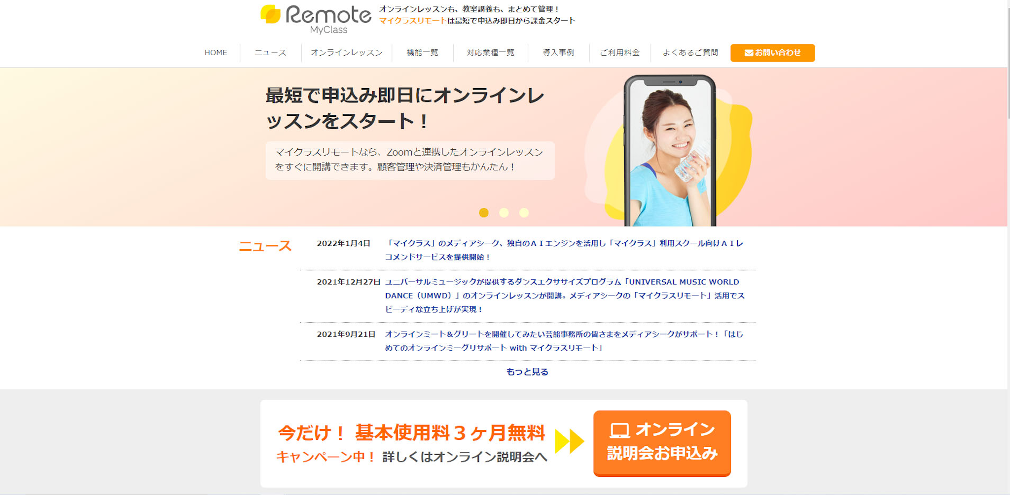特に新型コロナウイルス感染症拡大により対面や大人数によるレッスンが困難な現在、オンラインレッスンへの対応は教室運営に非常に有効です。