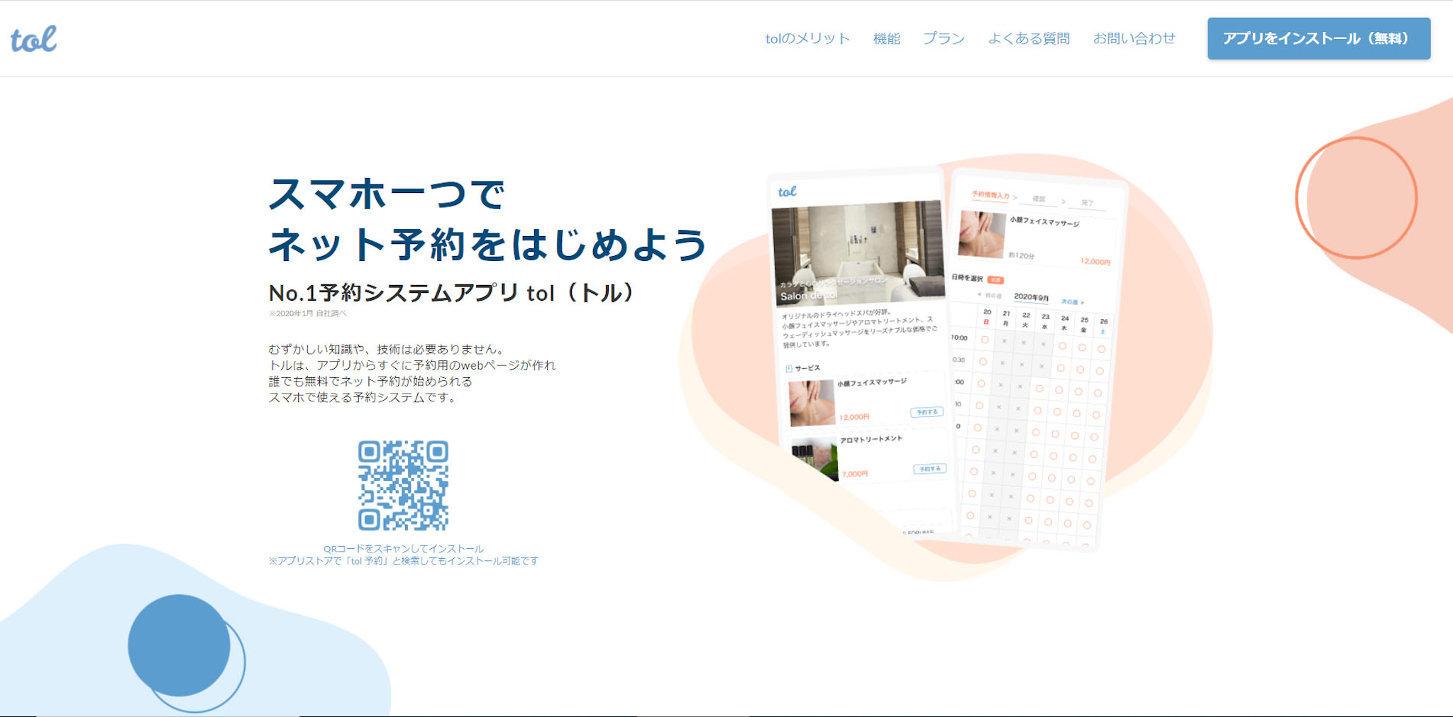 tolは料理教室での運用に最適化されたスマートフォン向けの予約システムです。