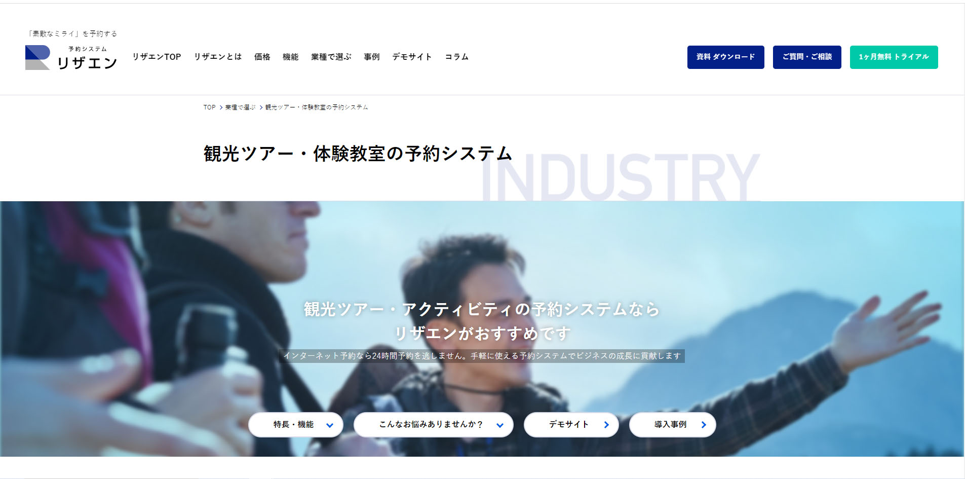 リザエンは予約管理、顧客管理、事前決済など、ツアーやアクティビティの予約に必要な機能をすべて網羅した予約システムです。
