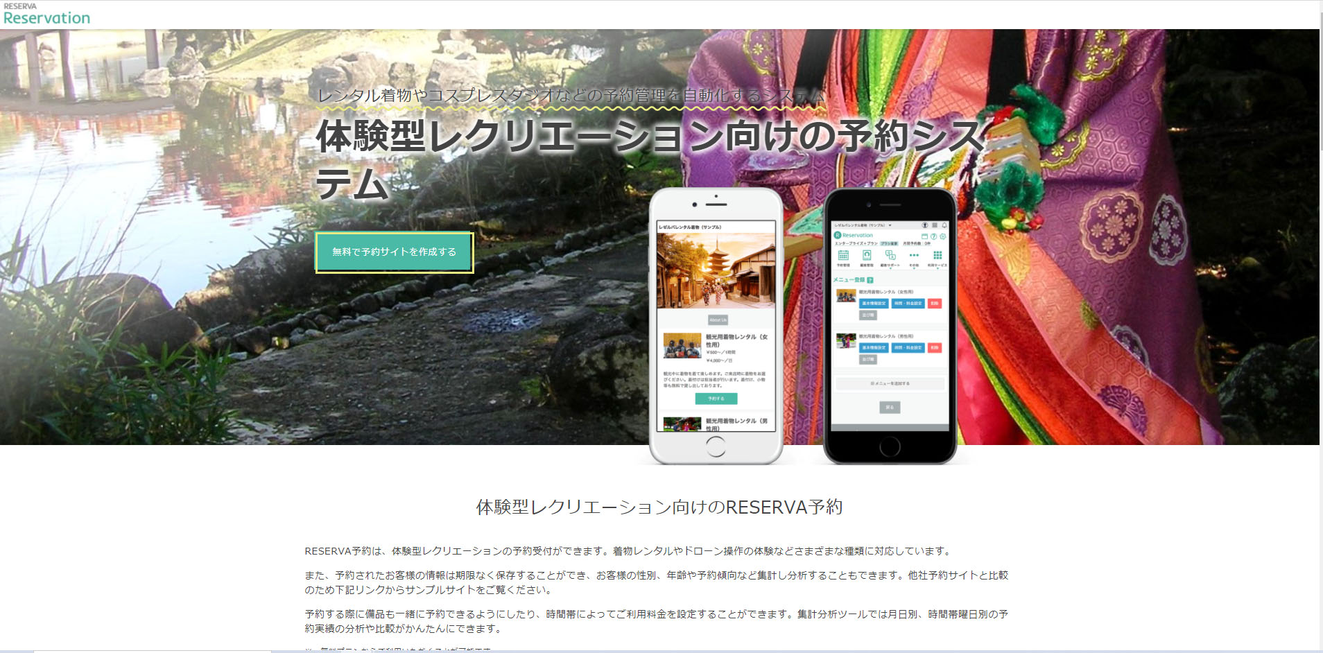 RESERVAはあらゆる体験型レクリエーションに対応した予約システムです。