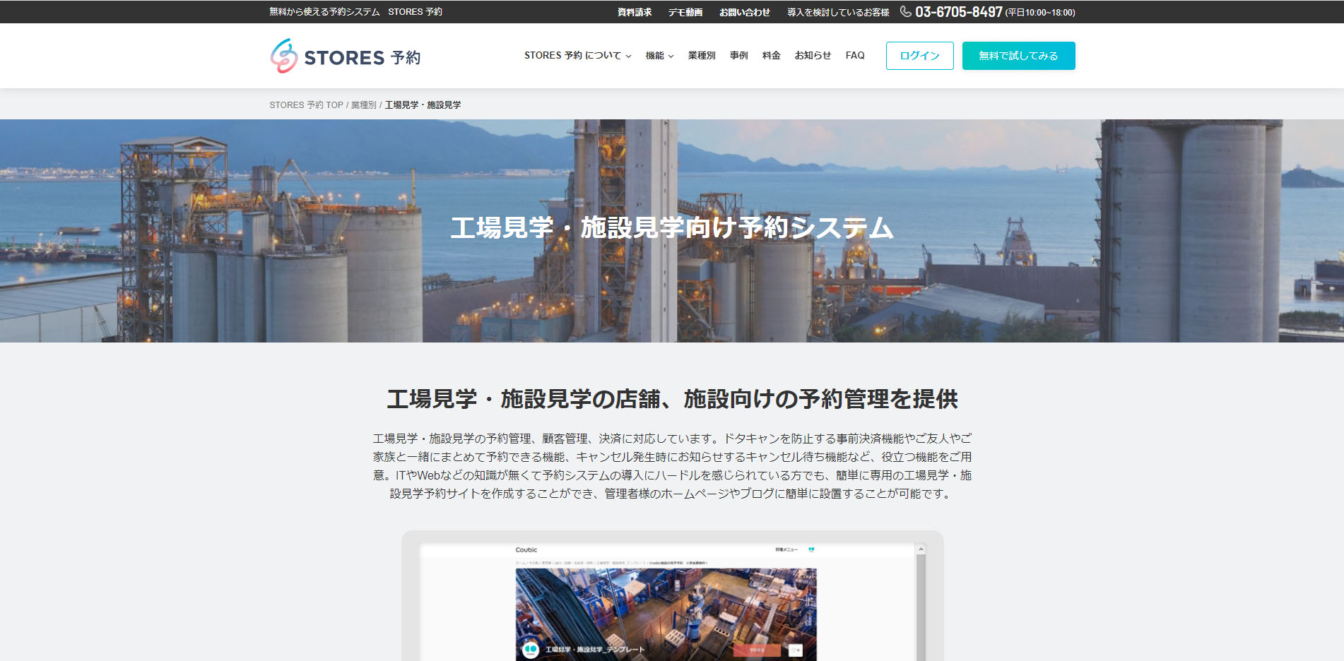 STORES 予約は工場見学や施設見学の予約管理、顧客管理、決済に対応した予約システムです。