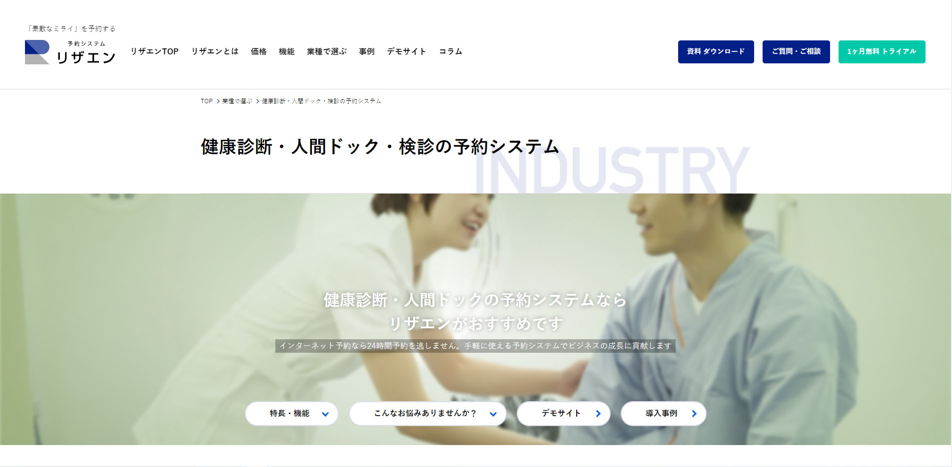 企業の健康診断をはじめ、検診センターや総合病院における健康診断や人間ドックのインターネット予約受付にも完全対応した予約システムです。