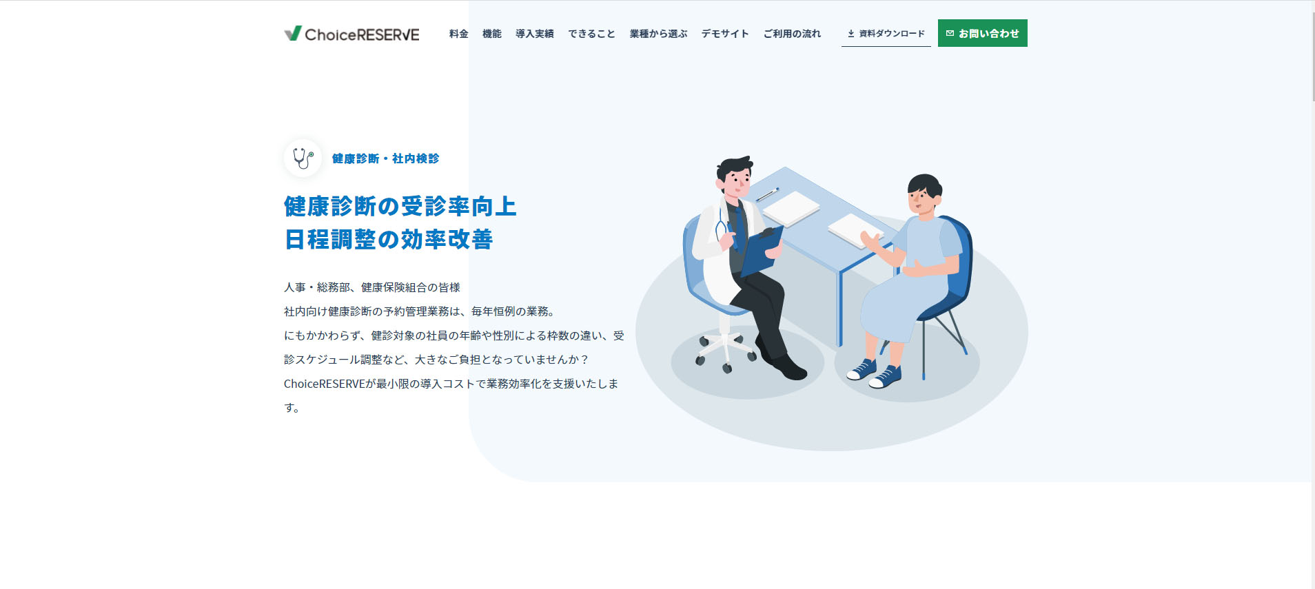 企業における健康診断や人間ドッグなど健診の予約管理・日程調整の課題を数多く解決した実績を持つ予約システムです。