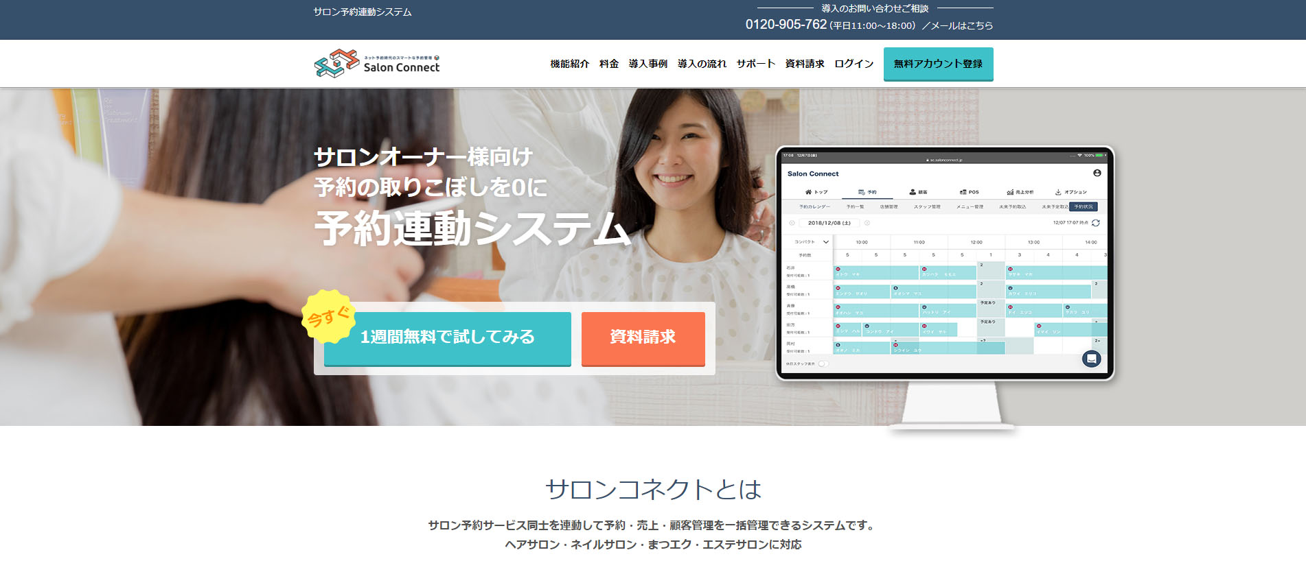サロンコネクトはネイルサロンにも対応した予約・売上・顧客を一括管理できる予約システムです。
