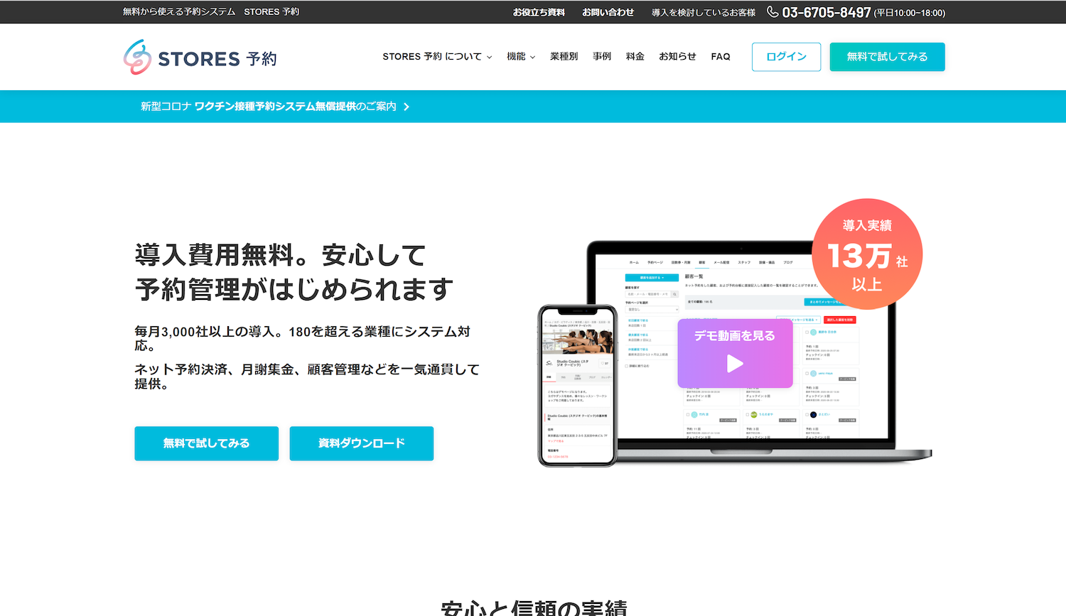 あらゆる業種に対応されていて、基本機能も無料で使えるので、初めてでも安心のシステムです。