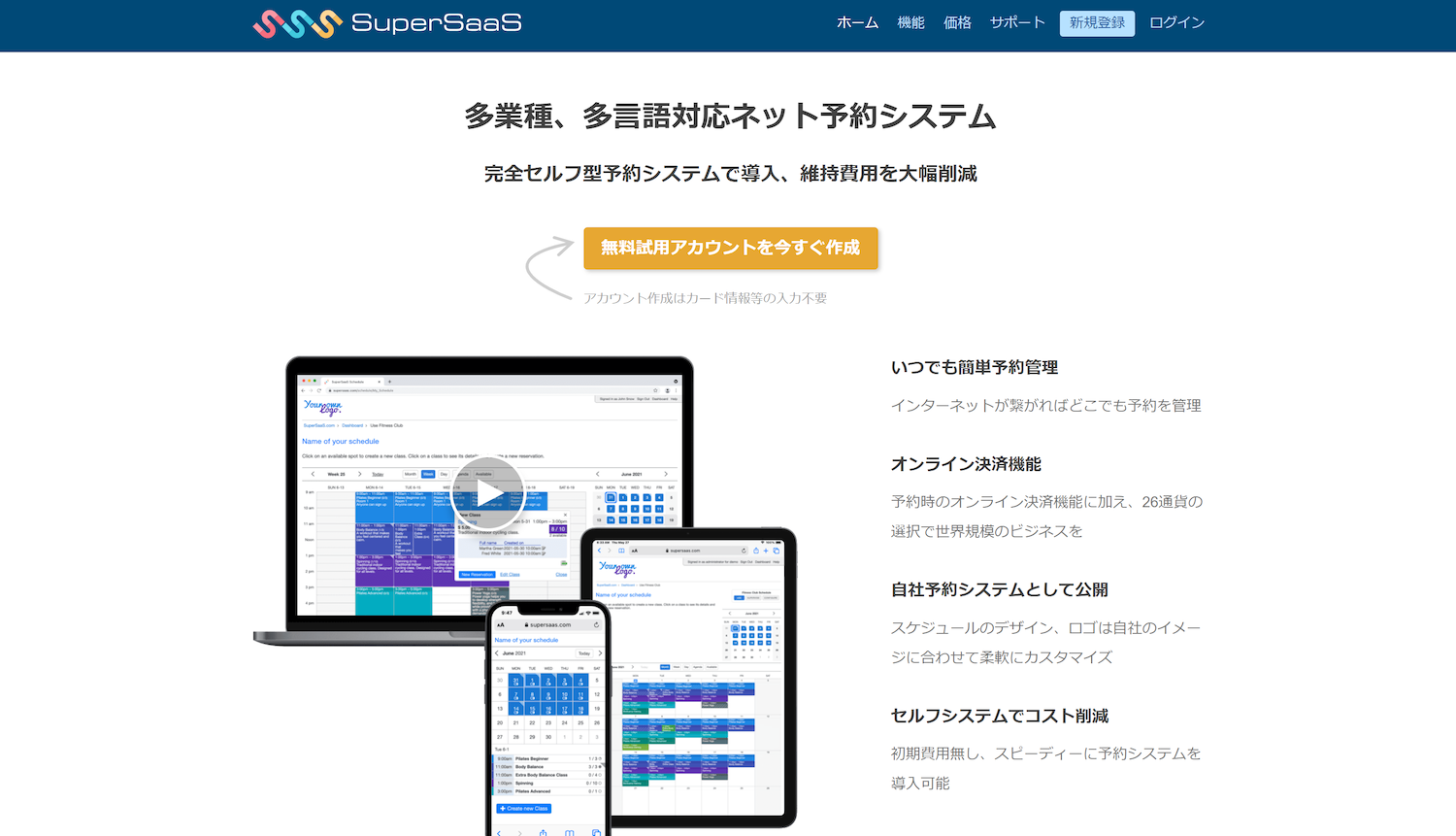 無料でも、月間予約件数の制限なしで使えるのがポイントです。顧客管理や予約時の自動メール配信、SSLを利用した通信も無料で使えます。