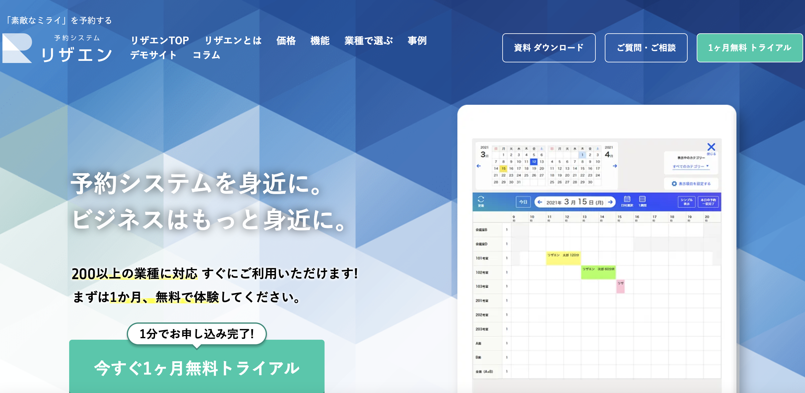 リザエンは200以上の業種に対応をしているオールインワンの予約管理システムです。