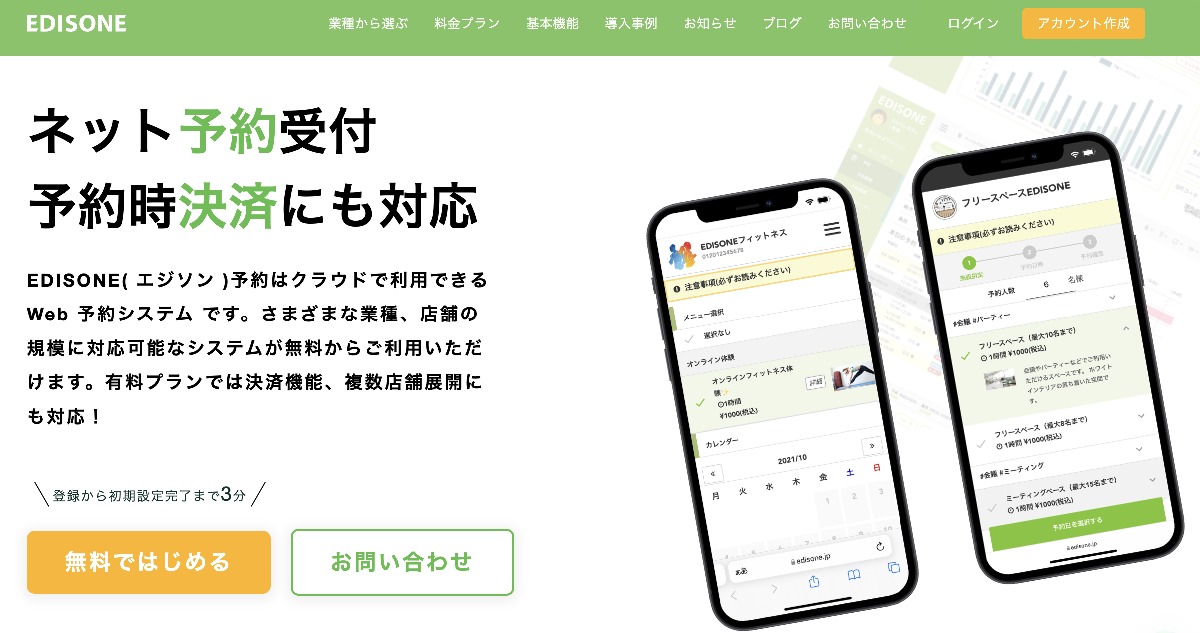 EDISONE(エジソン)は9種類の予約タイプ(テーマ)が選択できるあらゆる業種に対応をした予約管理システムです。