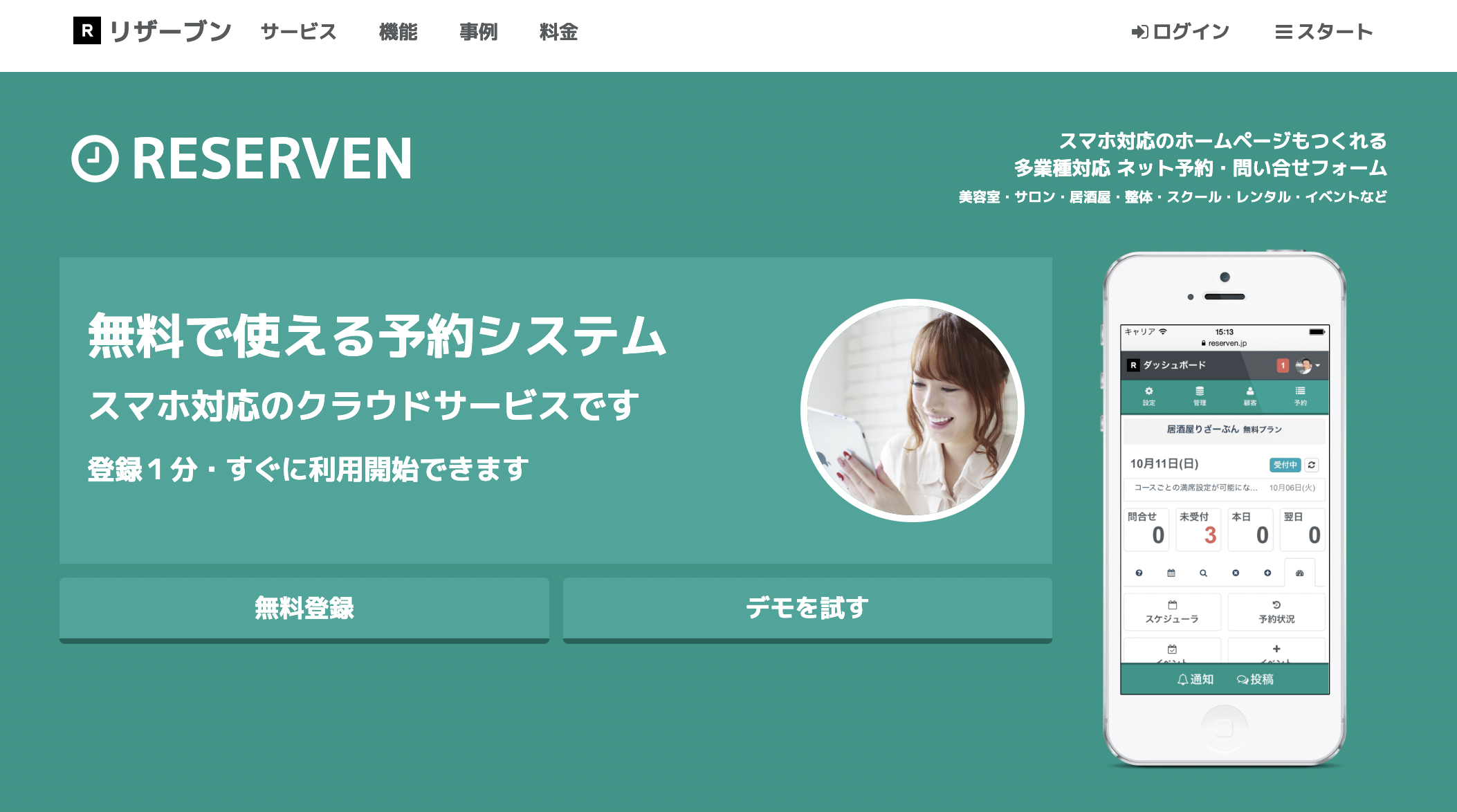 リザーブンは美容室・サロン・居酒屋・整体・スクール・レンタル・イベントなどの他業種に対応をした無料で使える予約管理システムです。