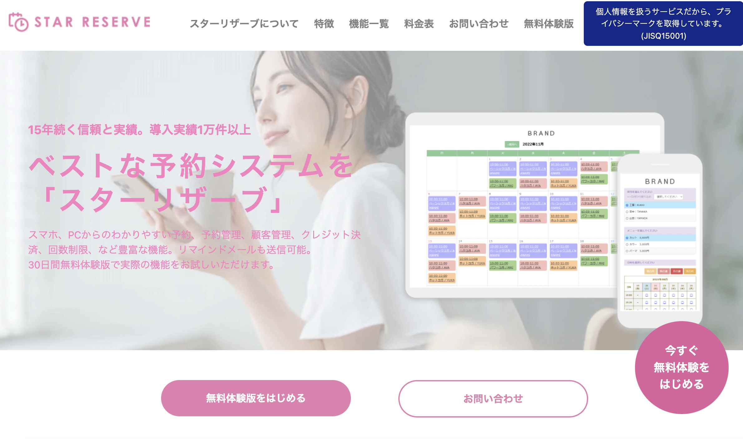 スターリザーブは15年以上サービスを提供して1万件以上の導入実績があるサロン・スクール向けの予約管理システムです。