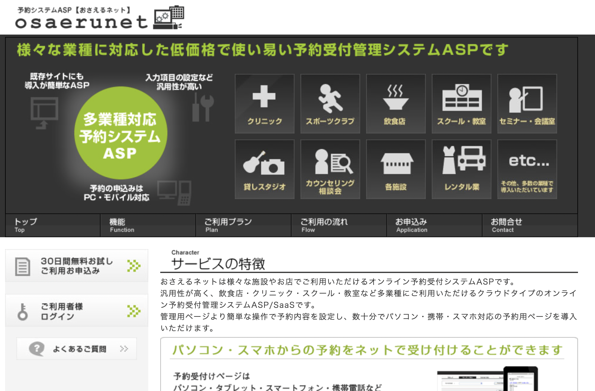 おさえるネットはさまざまな業種に対応をした施設やお店で利用されている予約管理システムです。