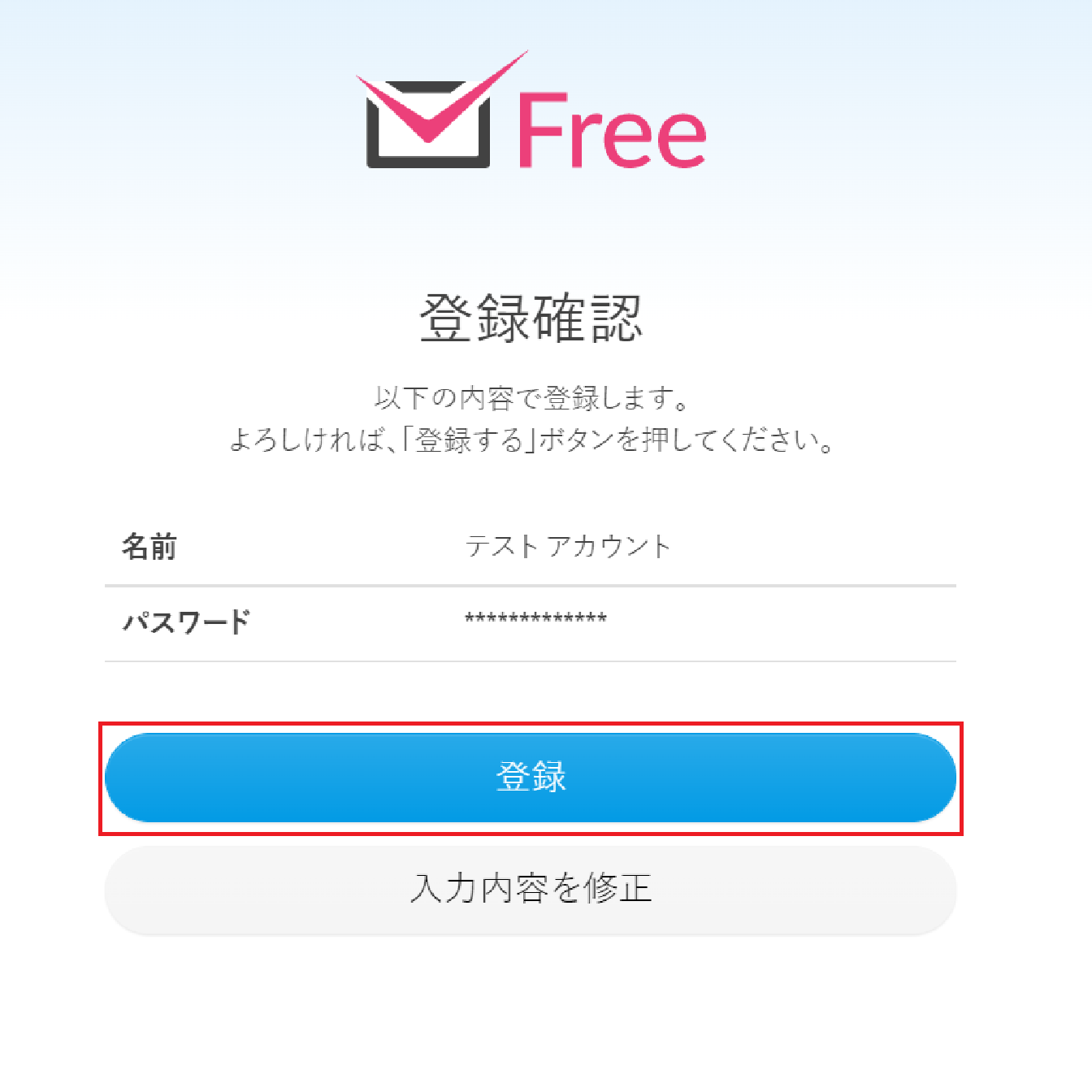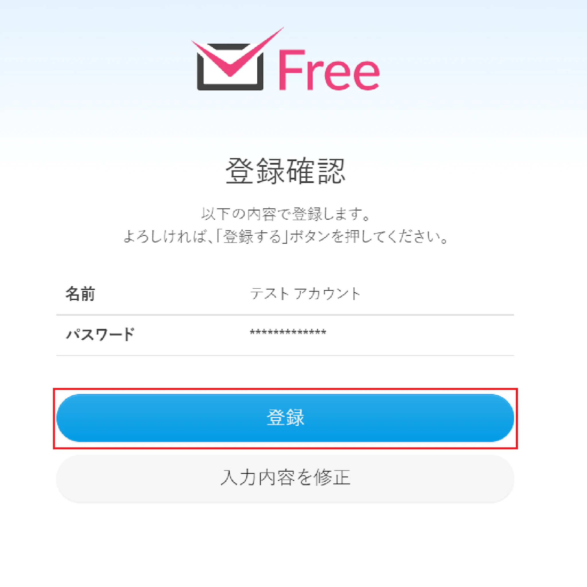 「登録」をクリックすれば、アカウント登録完了です。