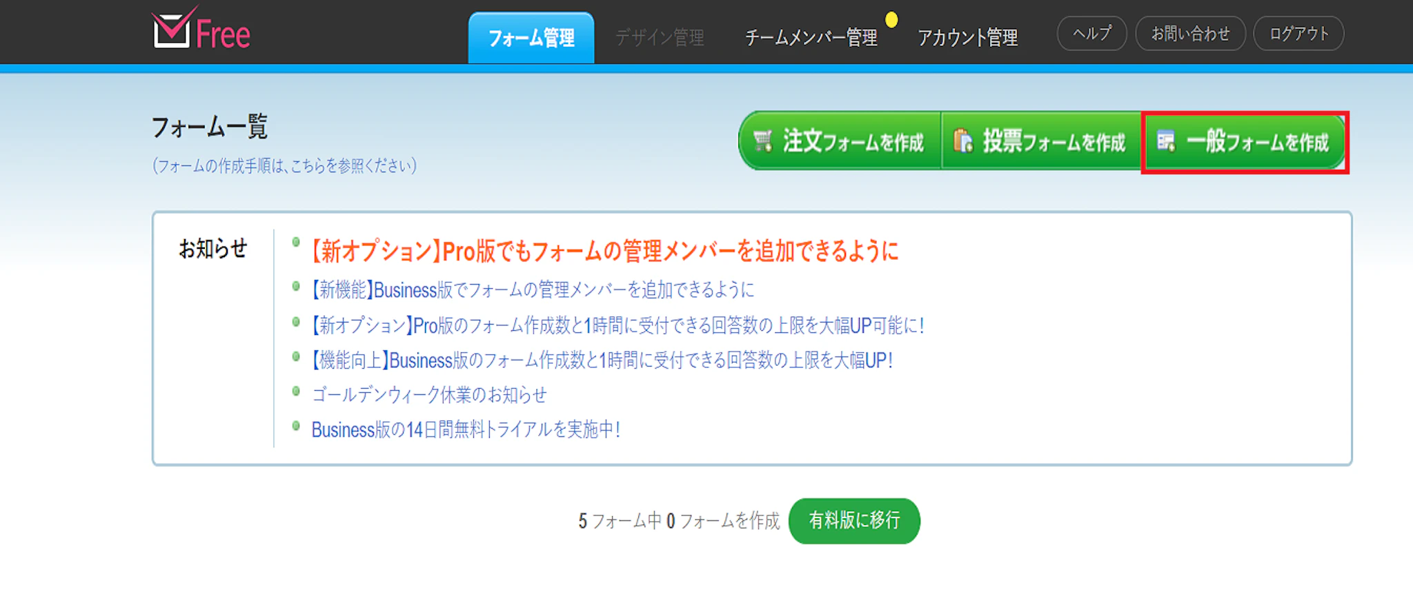 「一般フォームの作成」をクリックします。