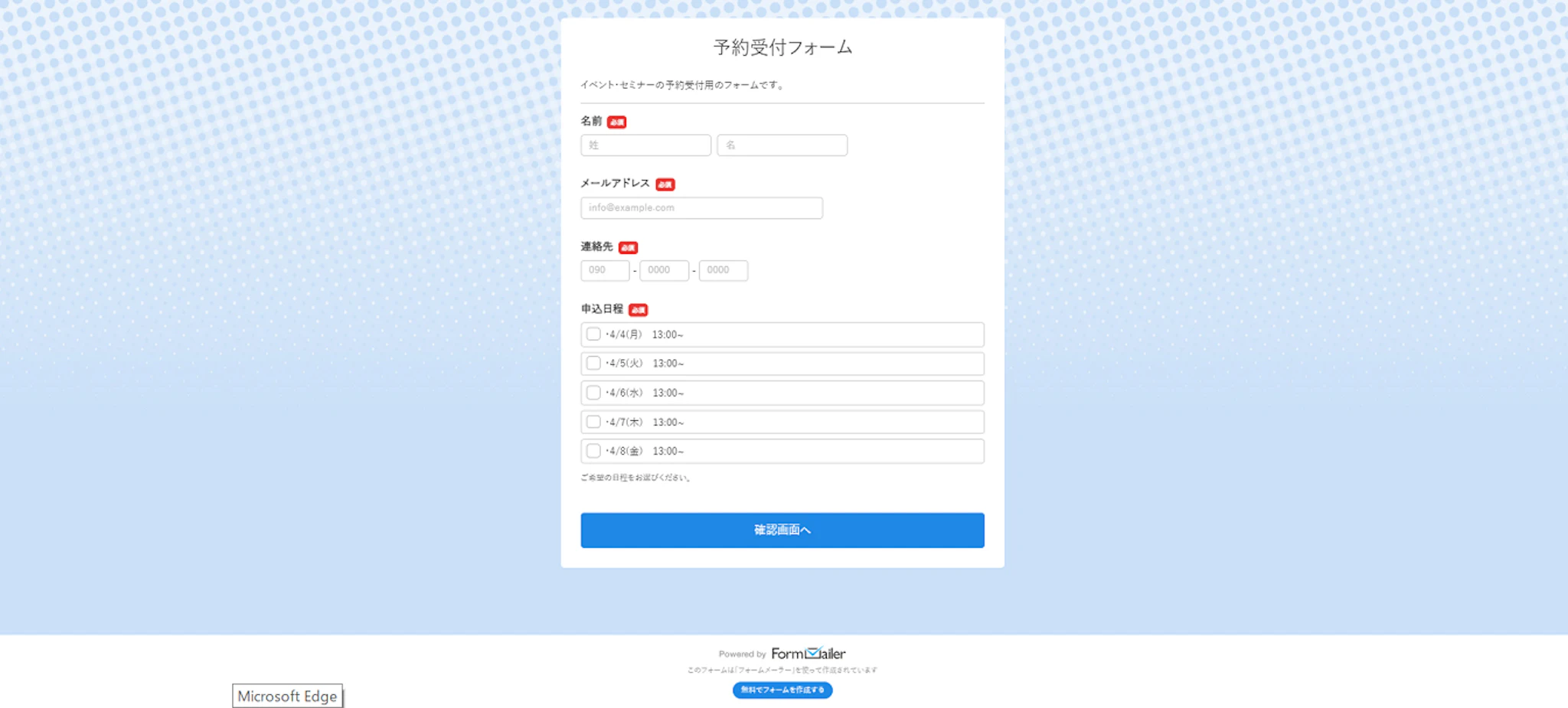 フォームに申込日程が反映されました。