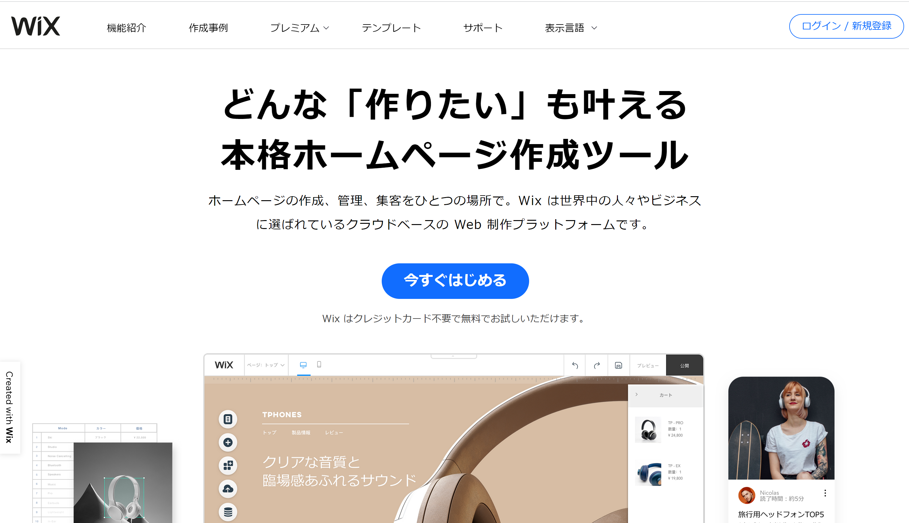 基本的な機能は備わって、1ページだけなら無料で作成可能です。