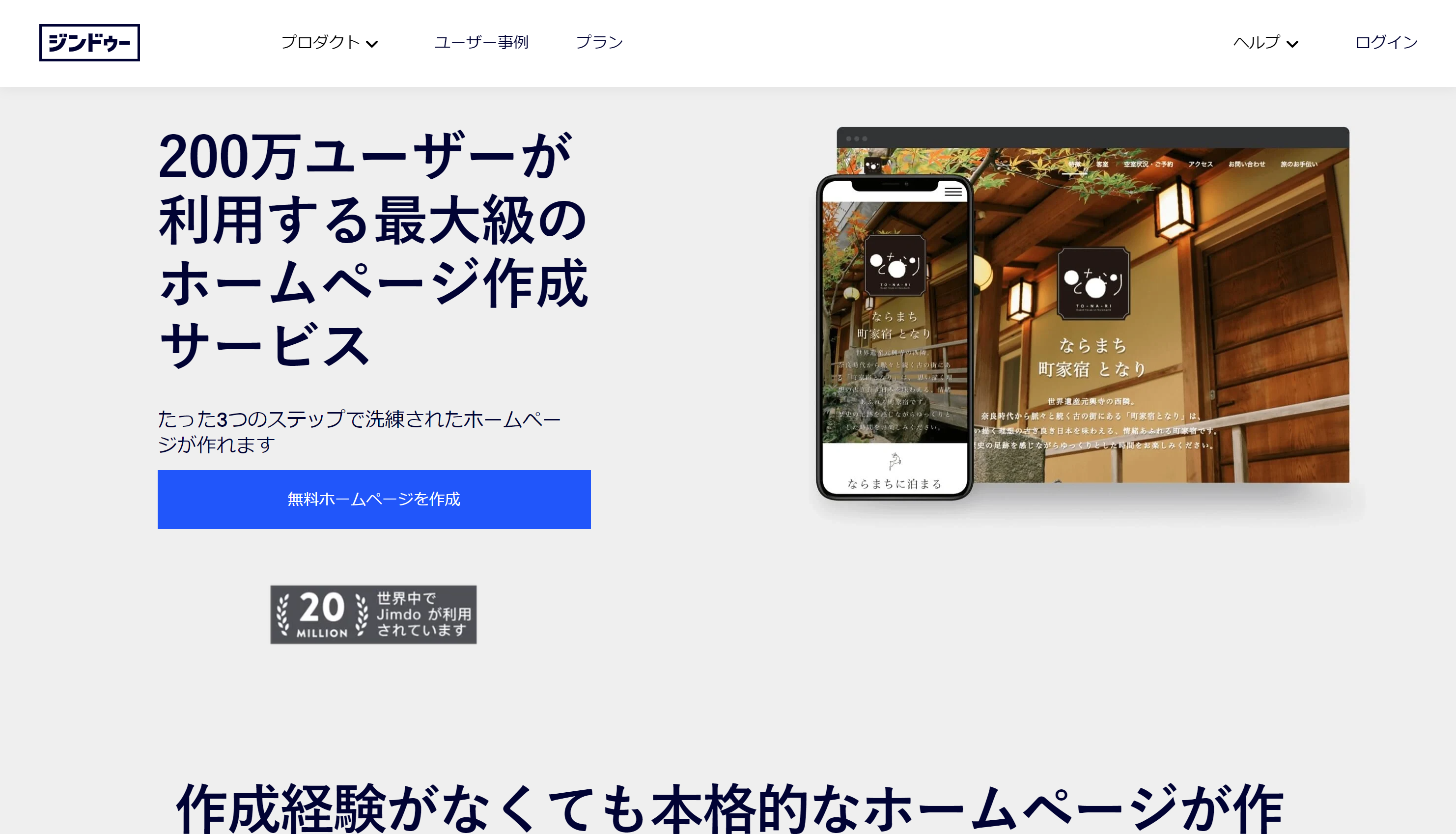 「Jimdo AI ビルダー」を使えば、簡単な質問に答えるだけで、最適なホームページを作成することができます。
