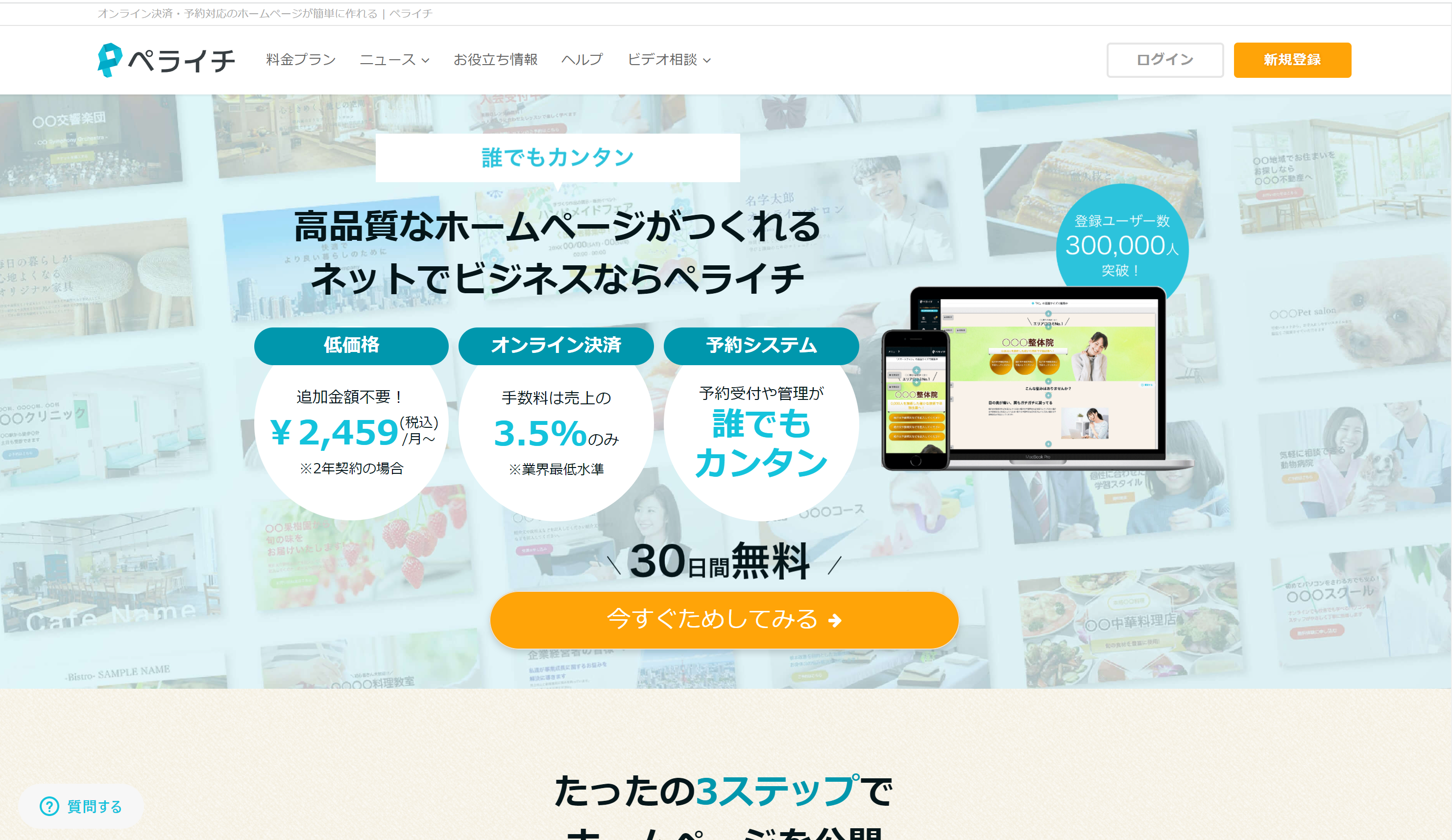 | ペライチ | 有料 | 1ページのみ、広告 | 〇 | 〇 | △ |