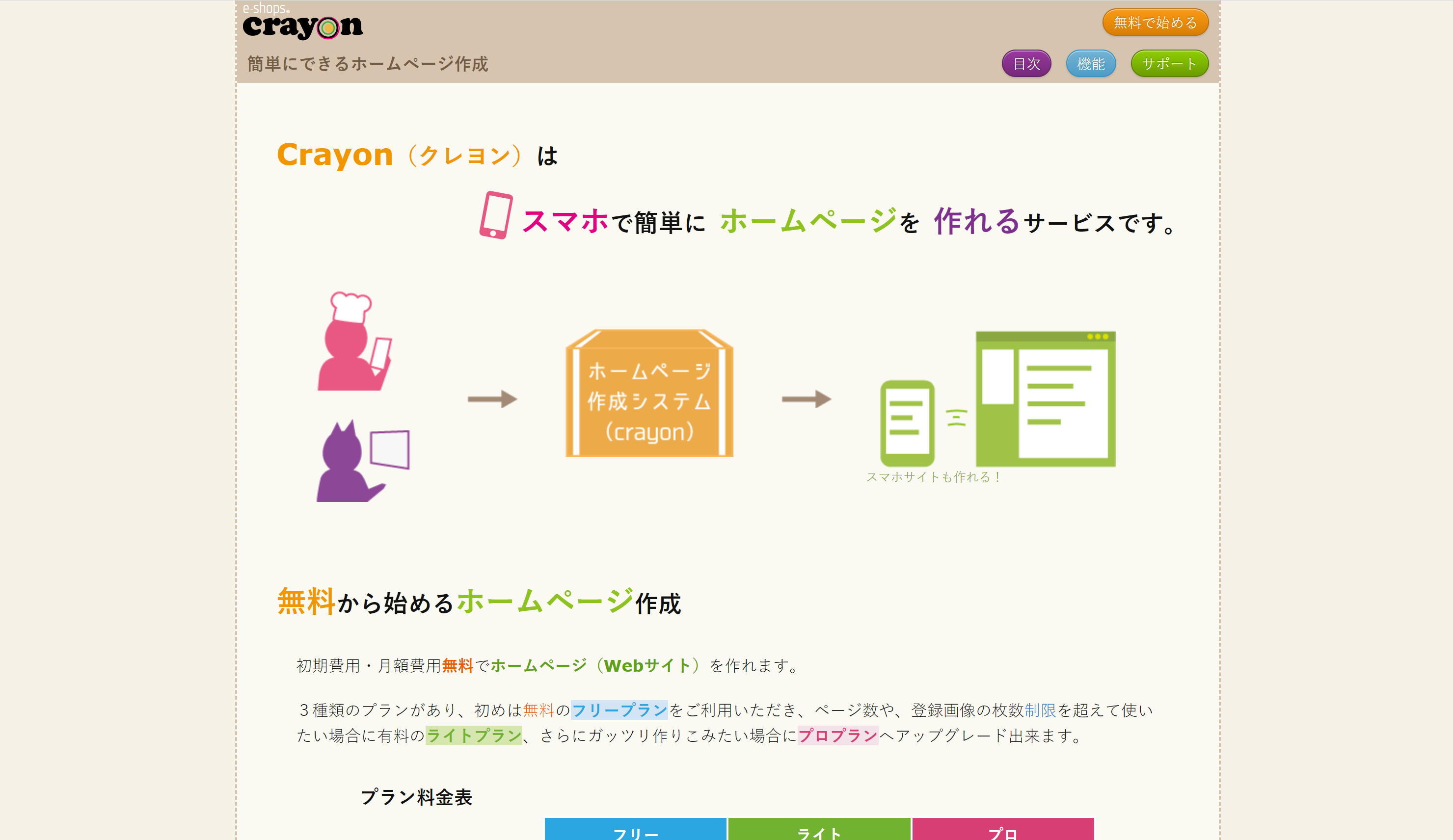 Crayonはスマホを使って手軽にホームページが作れるツールです。