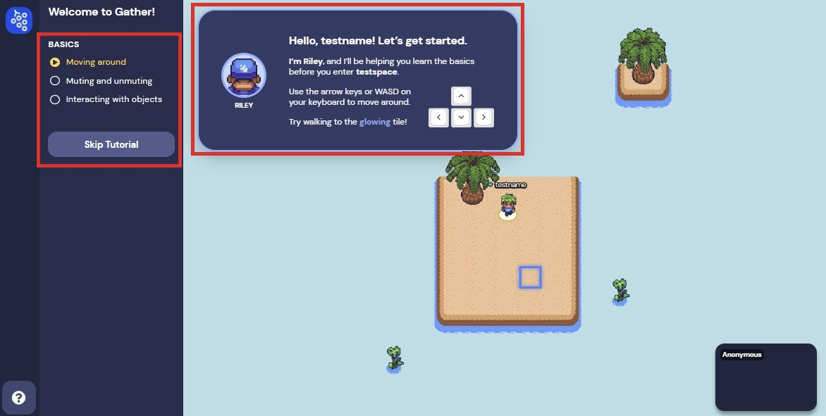 チュートリアルが終わり、仮想オフィスにてアバターを動かすことができるようになりました。