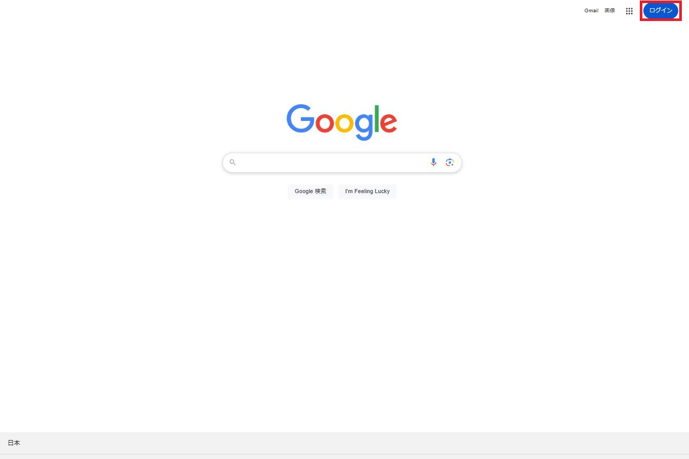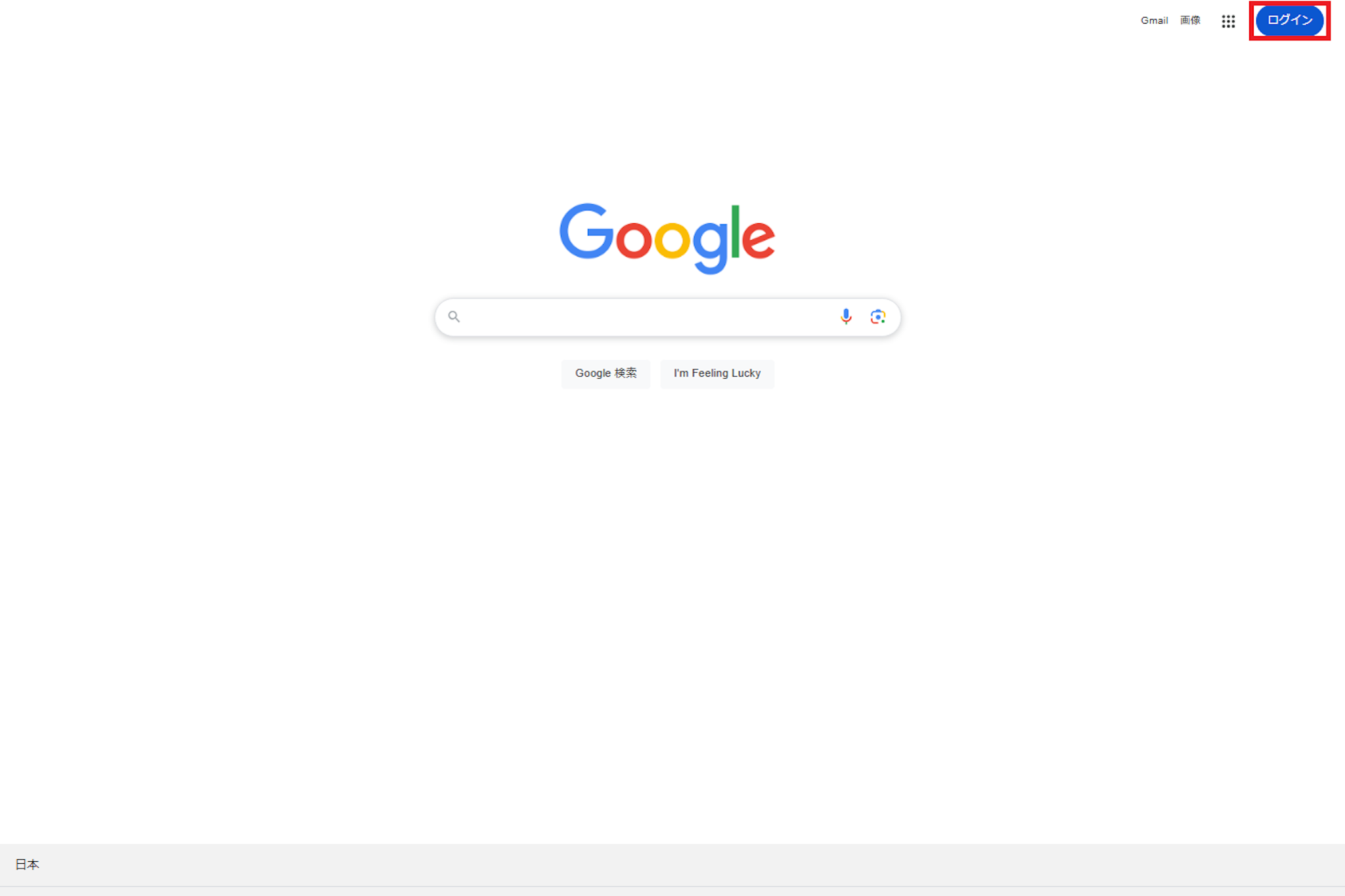 Googleのトップページ(www.google.com)にアクセスして、右上の「ログイン」を選択します。