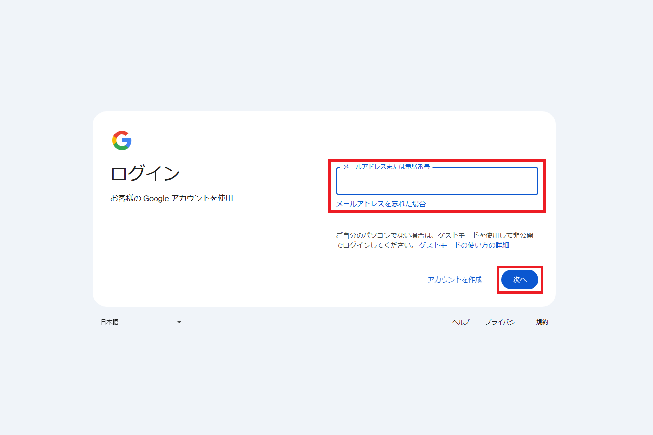 Geminiを利用するにはGoogleのアカウントが必要です。