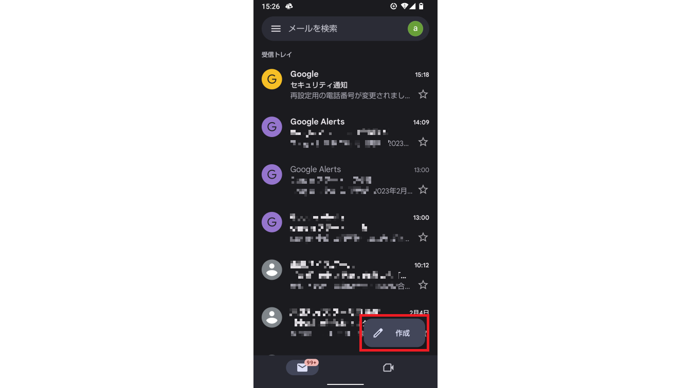右下の「作成」アイコンからメールの作成が可能です。
