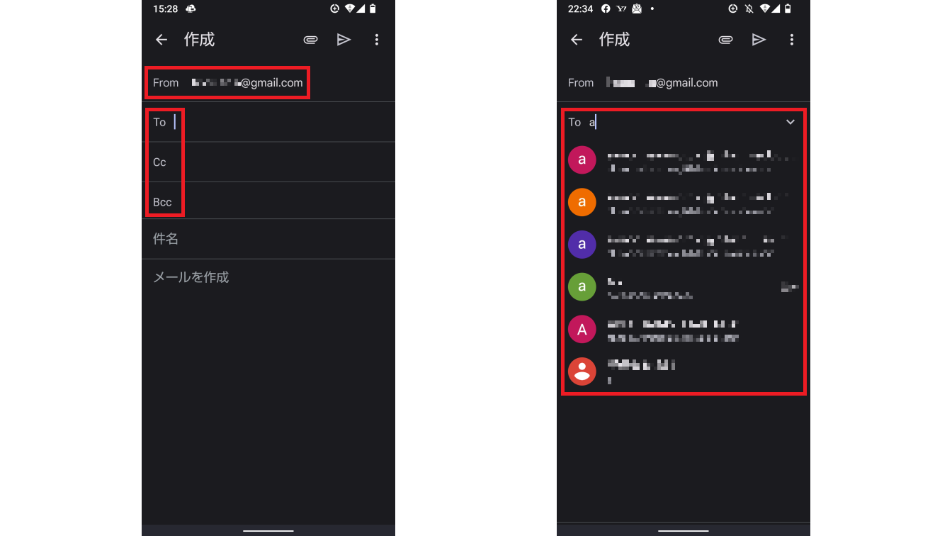 「To」を展開すると「Cc」「Bcc」の項目が追加されます。