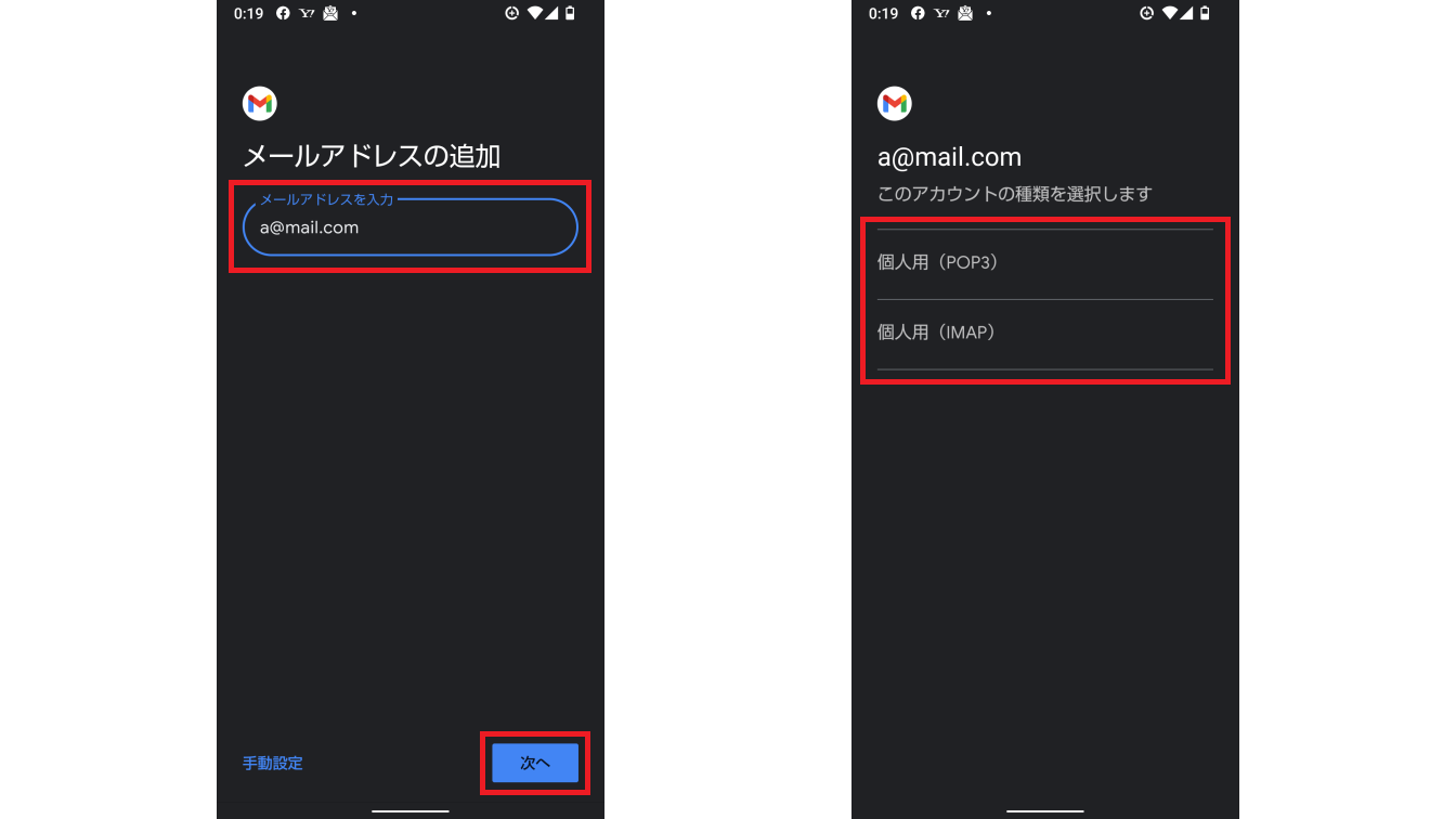 ビジネスやプライベートを分ける場合や、後ほど説明するGmailアカウント以外のメールアドレスも選択可能です。
