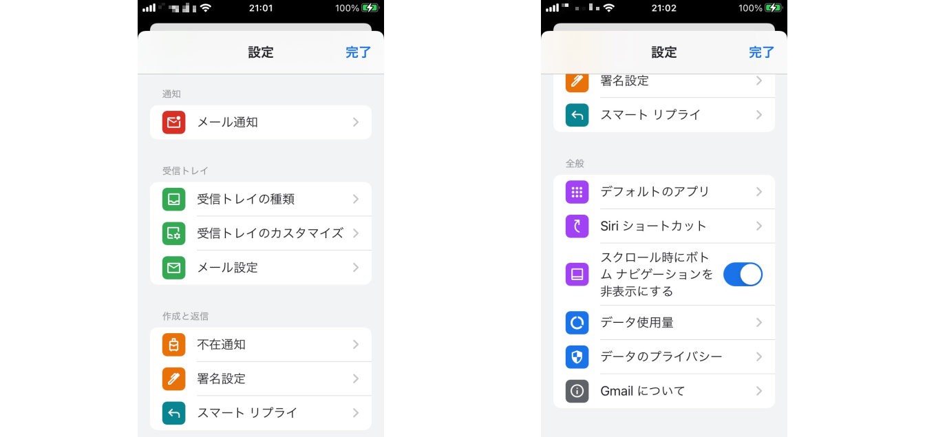 左右のスワイプを個別に設定できるため、削除やアーカイブがいち動作で完了します。