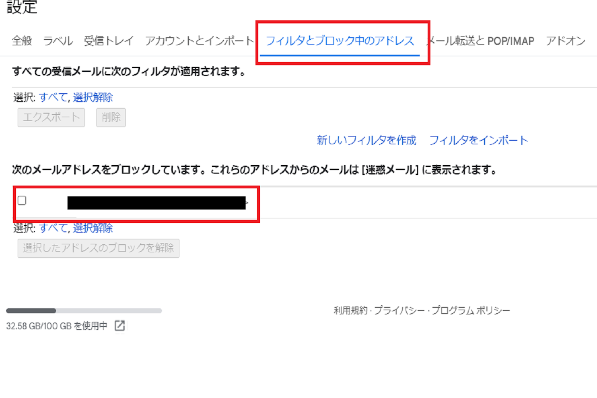 ブロックリストを確認することで、現在ブロックしている送信者を確認し、必要に応じて管理することが可能です。