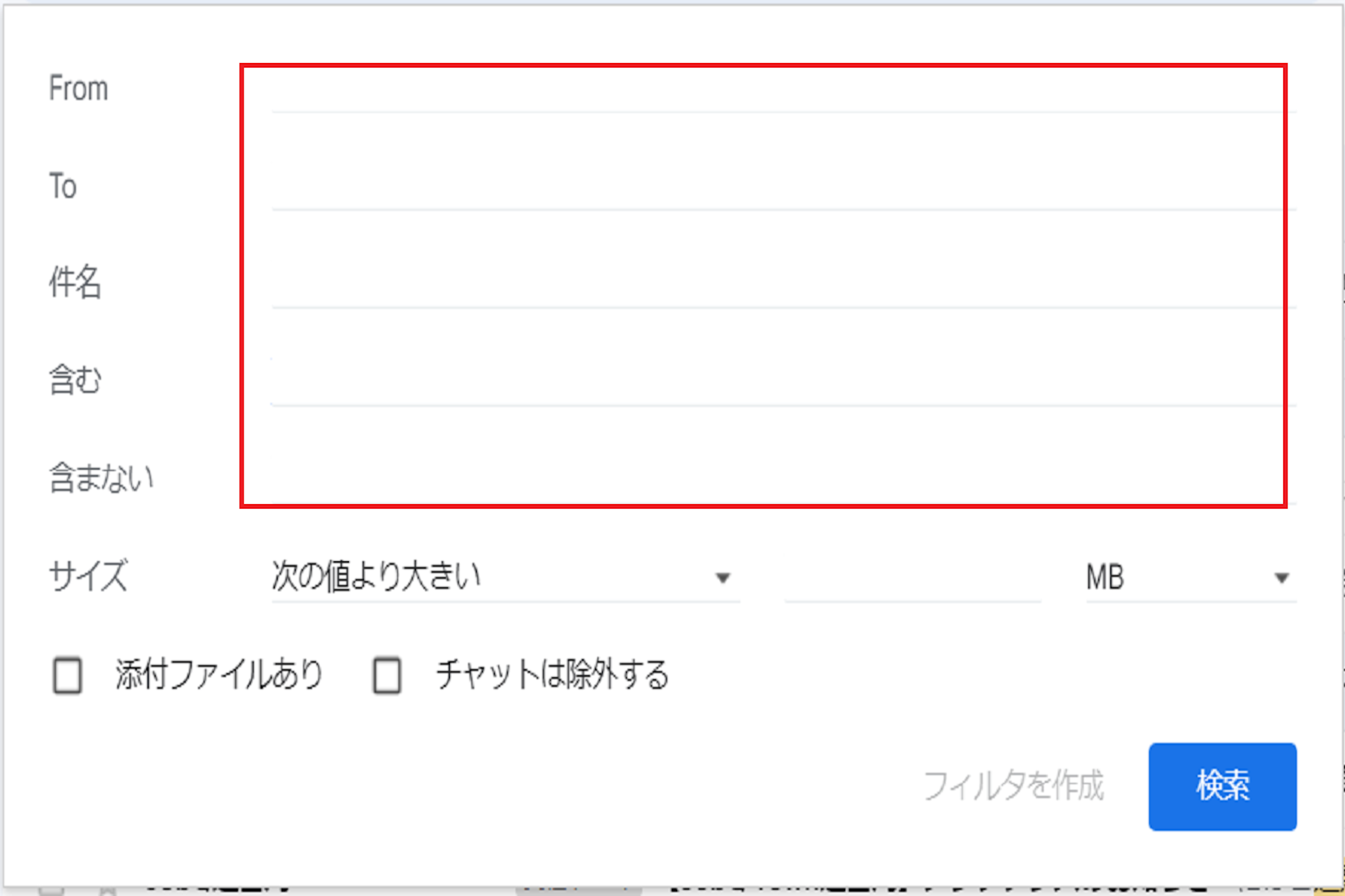 条件を指定する画面で、フィルタリングしたい条件を入力します(例:特定の送信者からのメール、特定のキーワードを含むメールなど)。