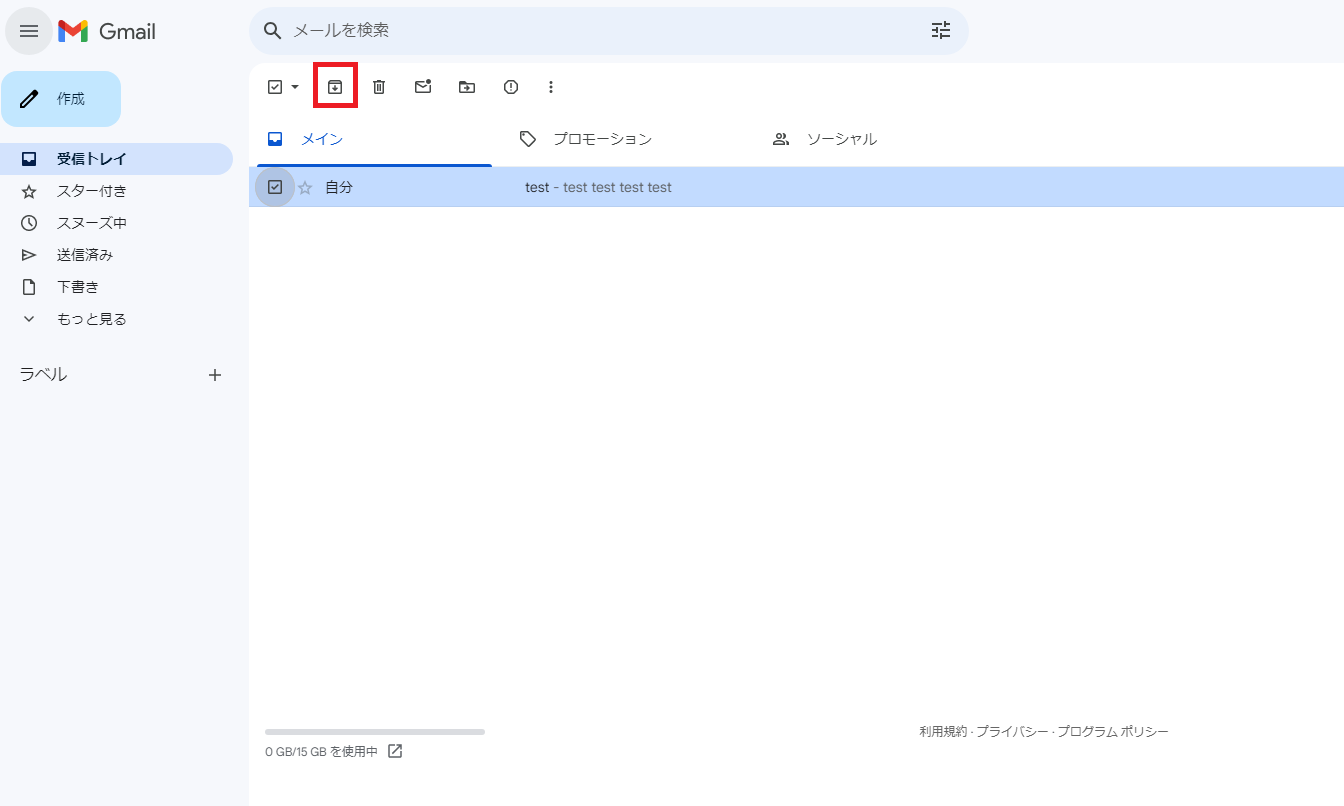 メールをアーカイブするには、対象のメールを選択し、「アーカイブ」ボタンをクリックするだけで、瞬時に受信トレイからメールを移動させることができます。