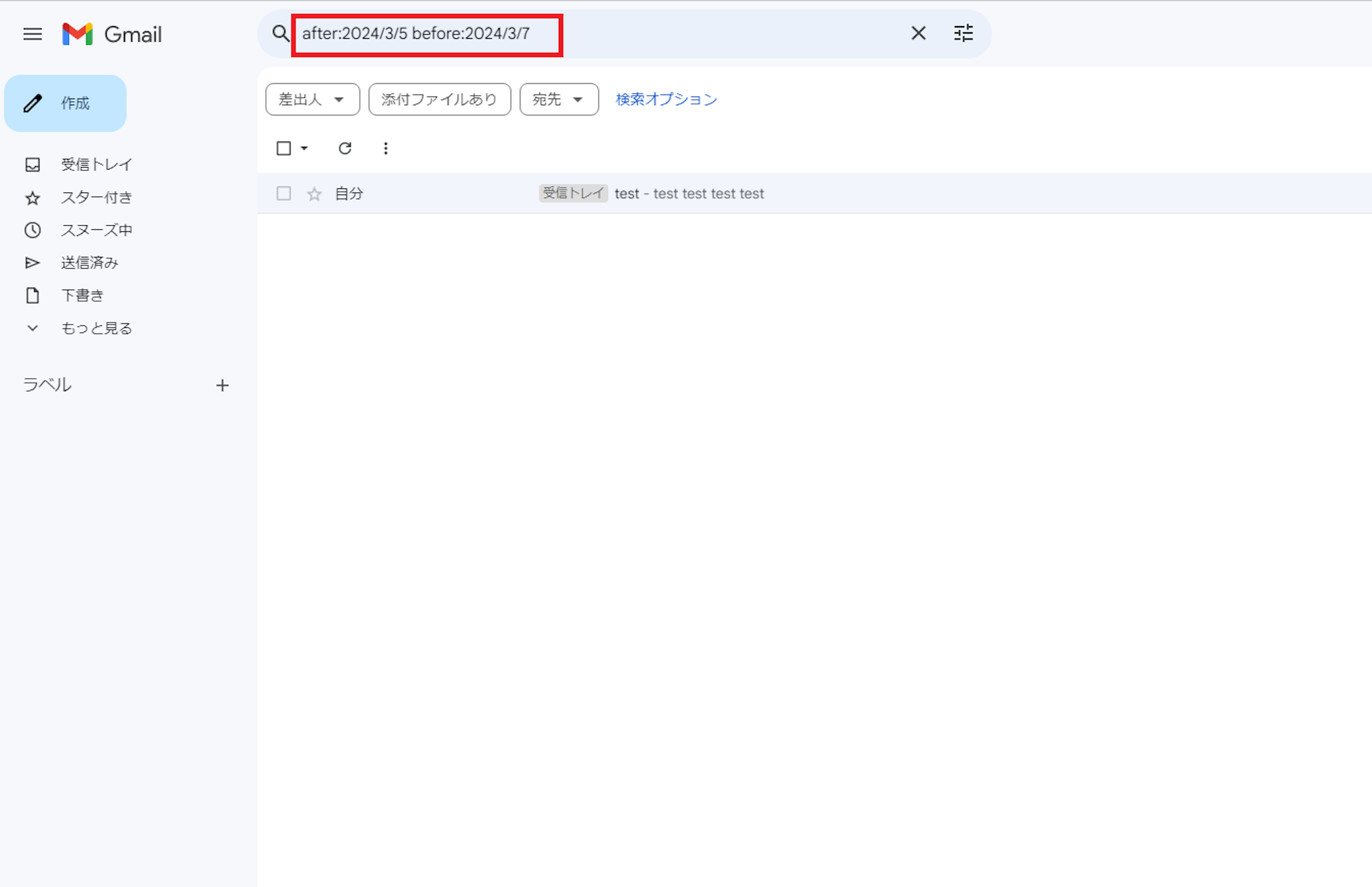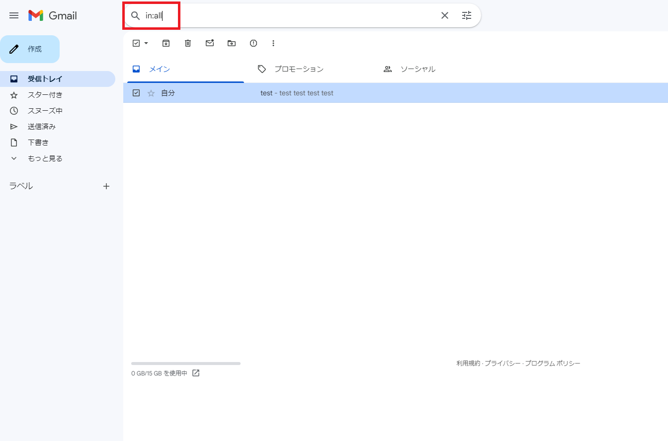「in:all」と入力することで、アーカイブされたメールも含め、アカウント内の全メールを対象に検索を行うことができます。