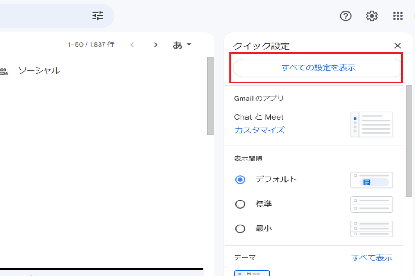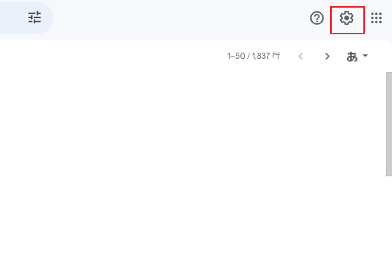 Gmailの画面右上に表示されている歯車アイコンをクリックします。