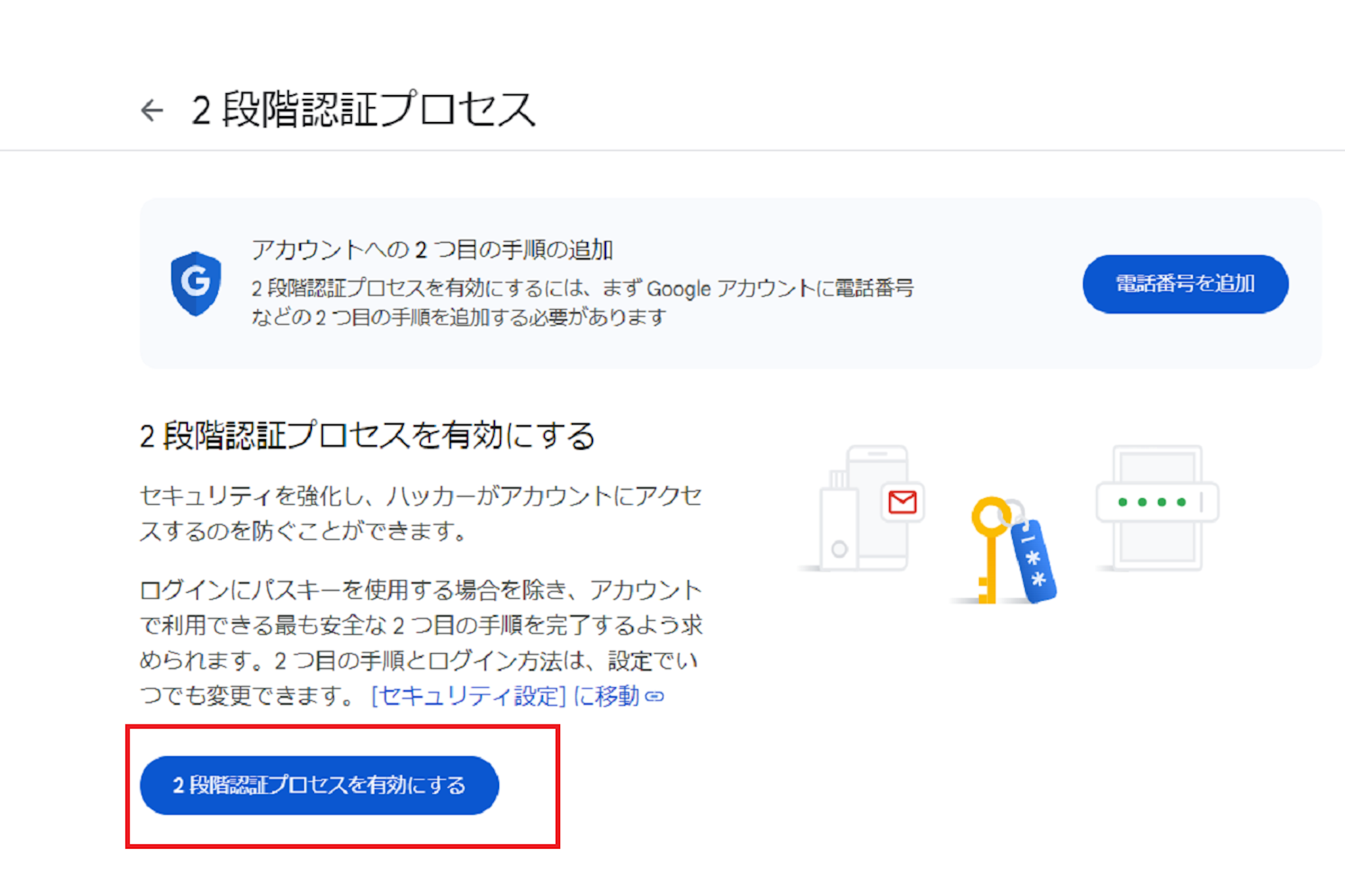 Gmailで2段階認証を設定する手順は以下の通りです。