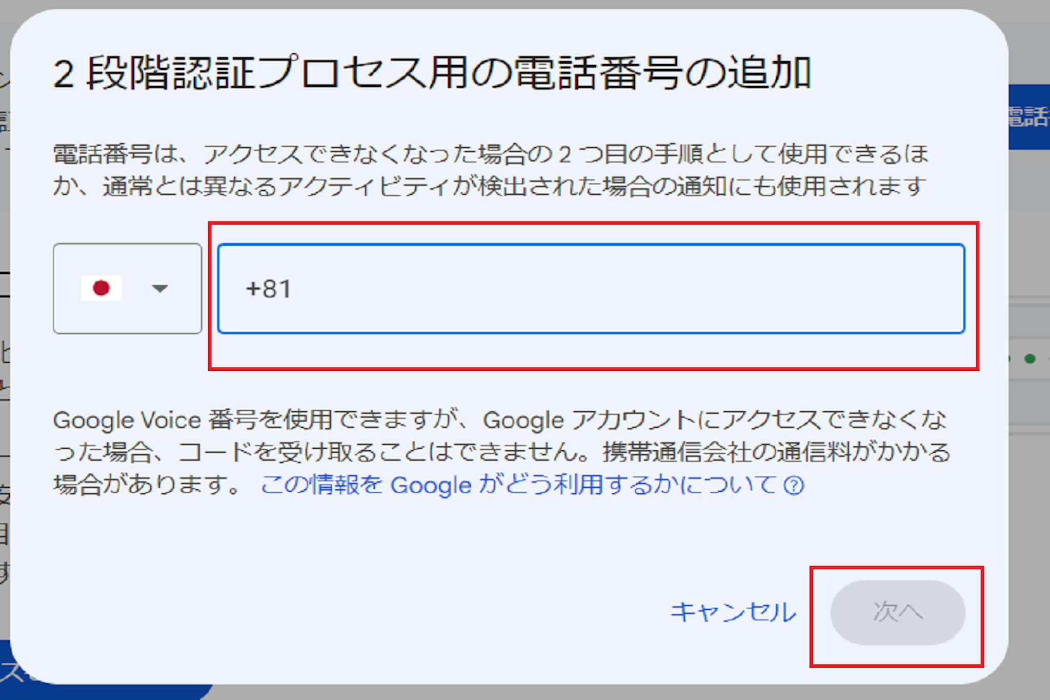 SMSまたは音声通話を通じて認証コードを受け取るための携帯電話番号を登録してください。