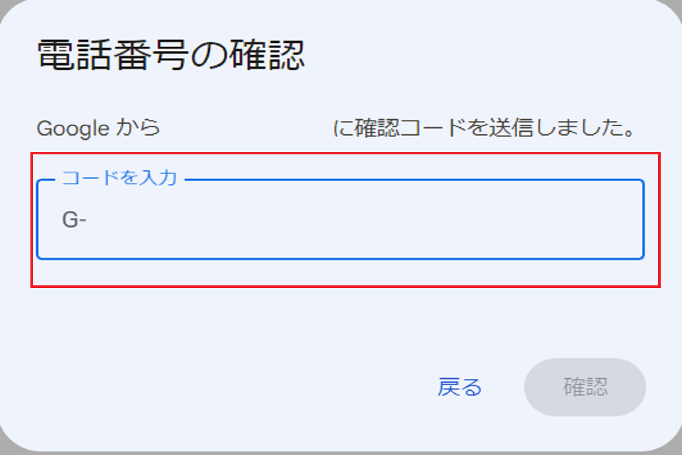 登録した電話番号に送信された認証コードを入力し、指示に従って設定を完了します。