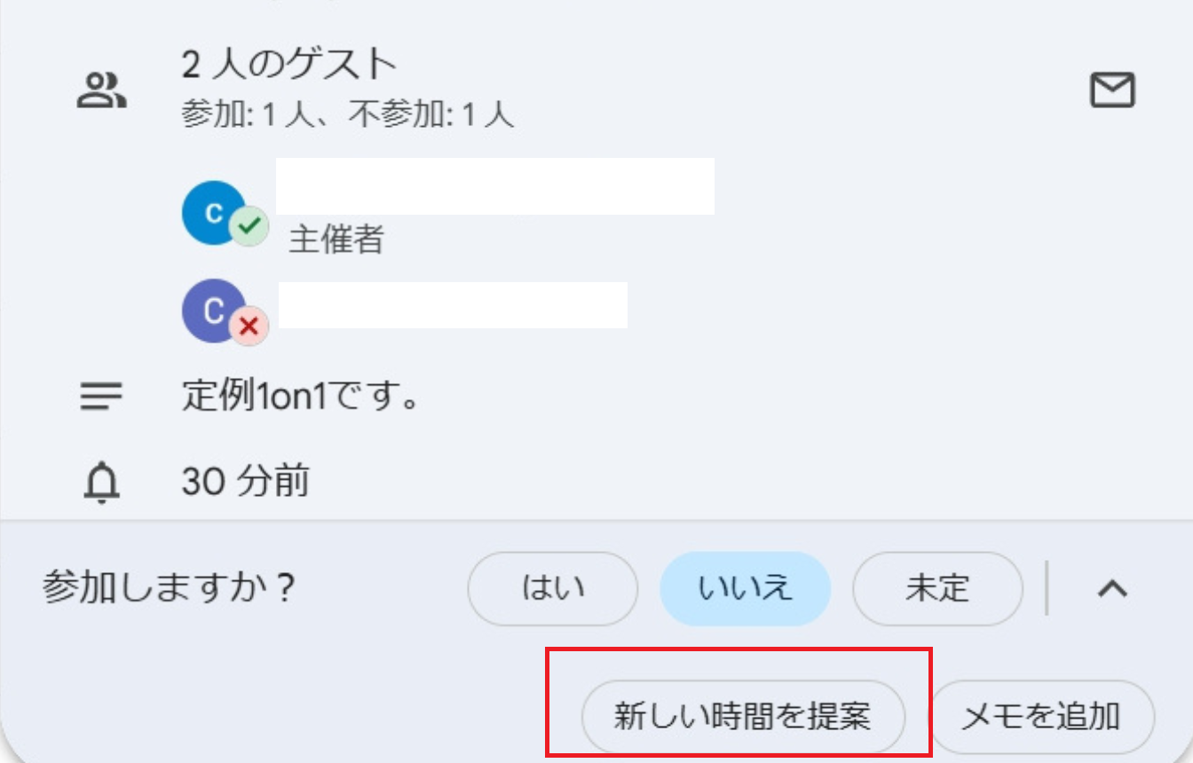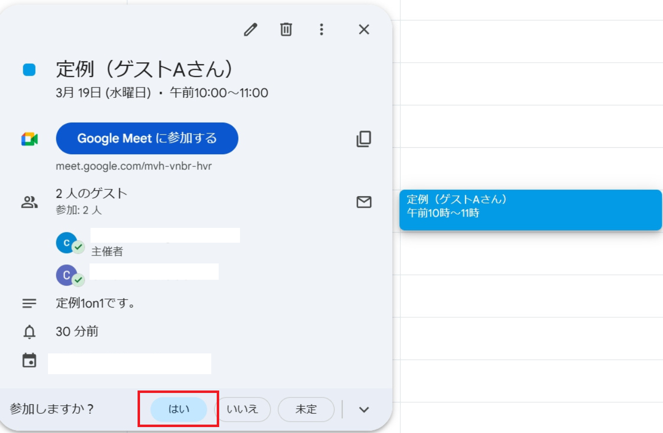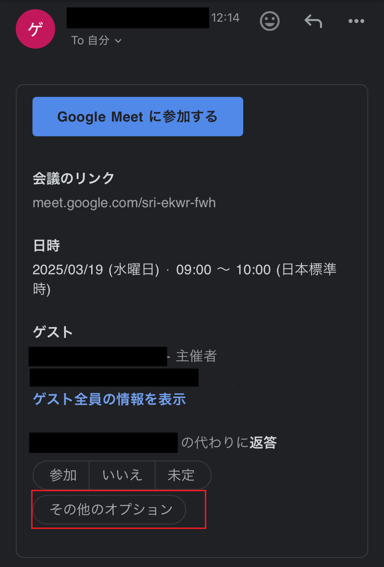 まず、カレンダーの予定に招待された場合の操作について解説します。