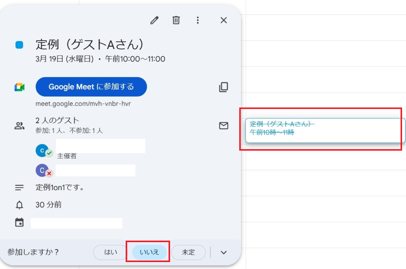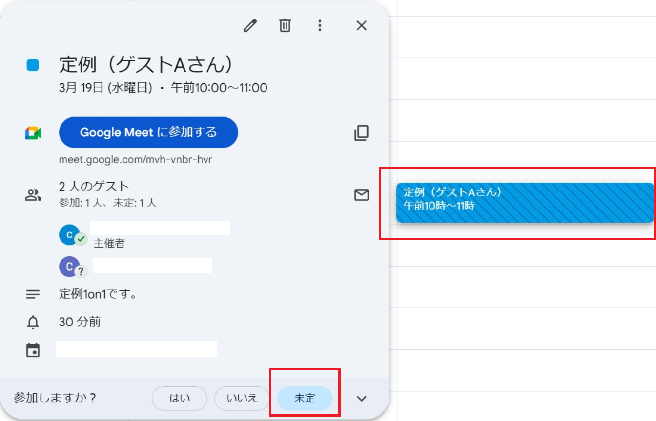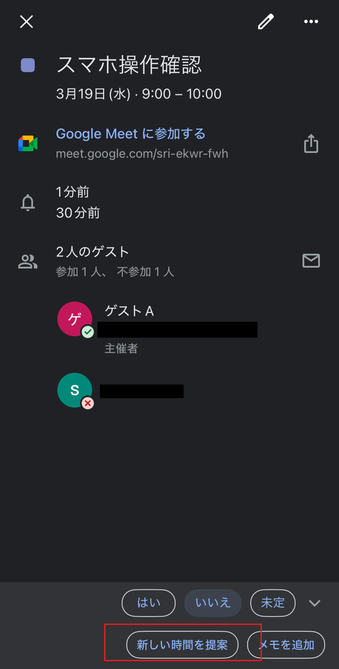 まず、カレンダーの予定に招待された場合の操作について解説します。