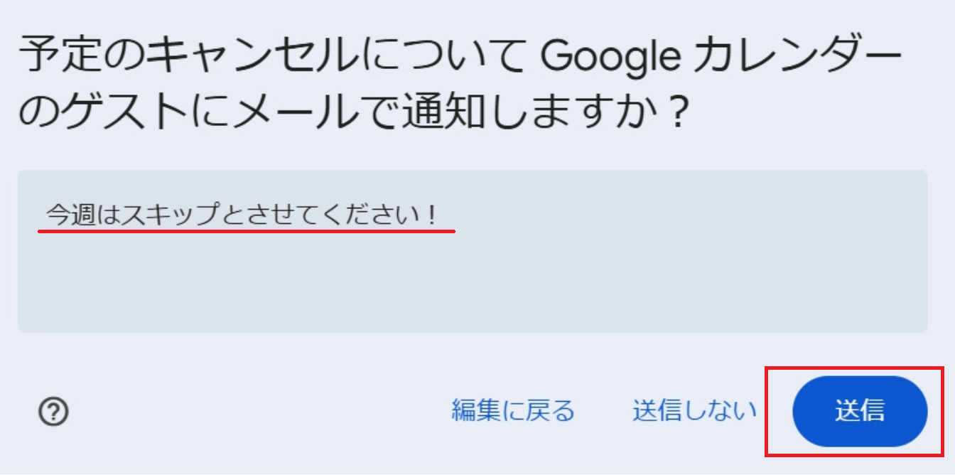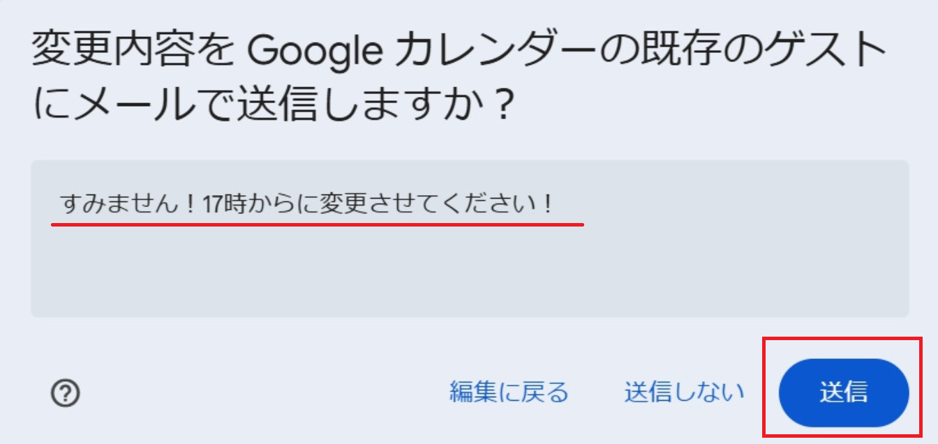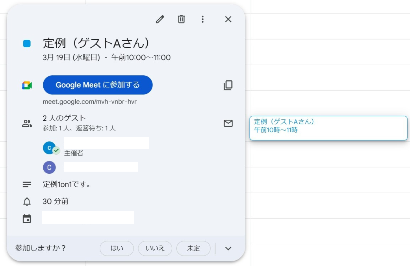既にゲストに予定を共有した後に、自分の都合で予定を変更したり、会議自体がなくなったりすることもあるかと思います。予定の変更・削除方法は以下の通りです。