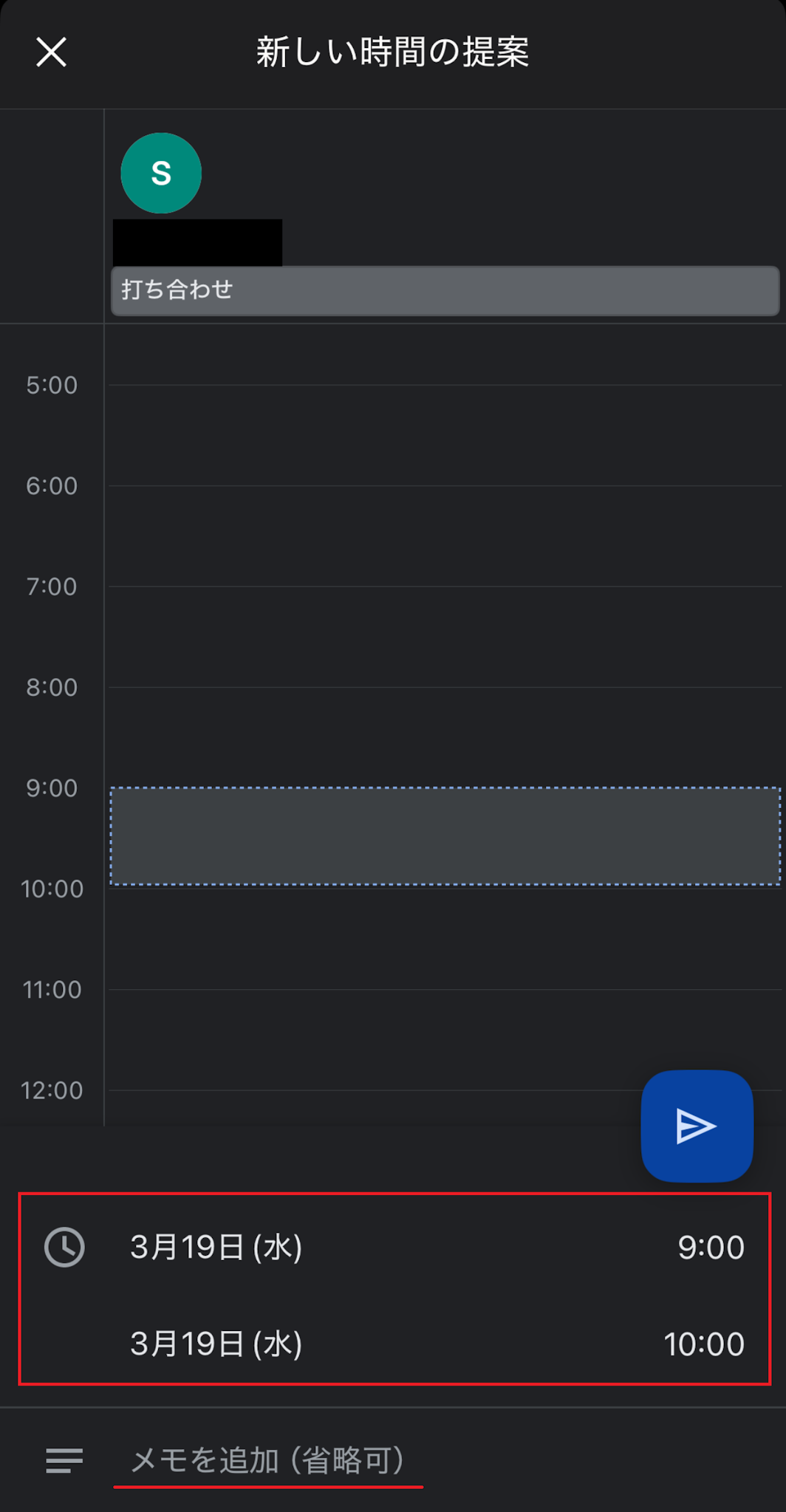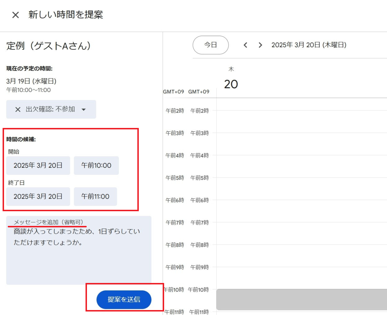 これで相手に「新しい時間を提案しました」とメールが届きます。