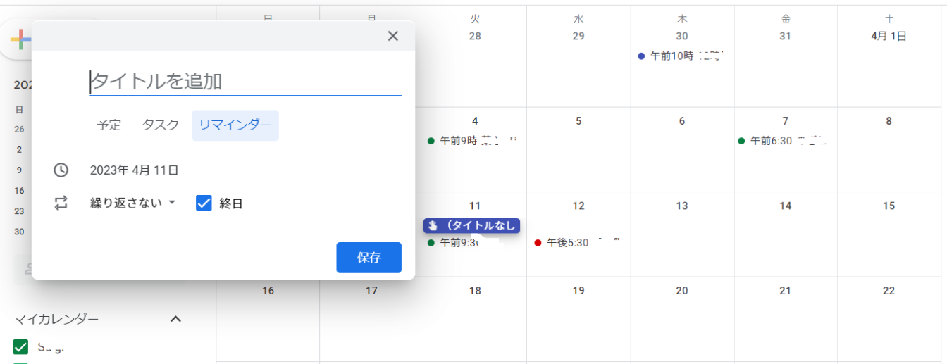 日時が決まっているものや毎週同じ作業が必要なものを忘れないためにも、Googleカレンダーのリマインダーを活用して管理することがおすすめです。