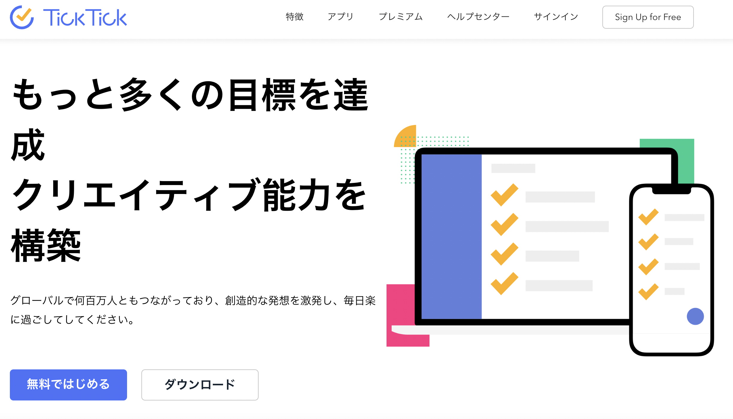TickTickは、ToDoリストやタスク、カレンダーなどを管理できるアプリです。