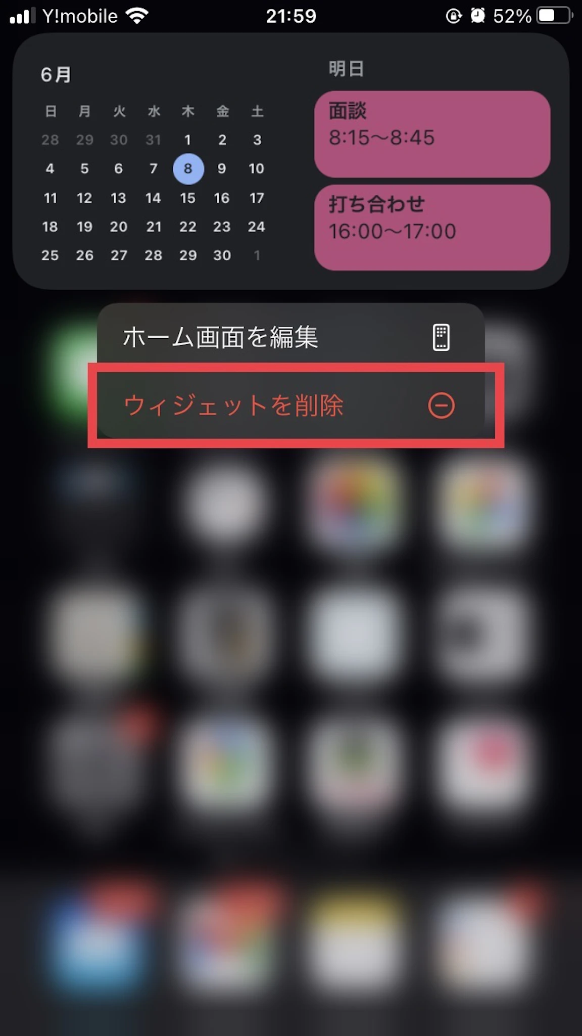 ホーム画面のウィジェットを削除したいときは、削除したいウィジェットを長押しすると「ウィジェットを削除」と表示されますので、そこをタップして削除します。