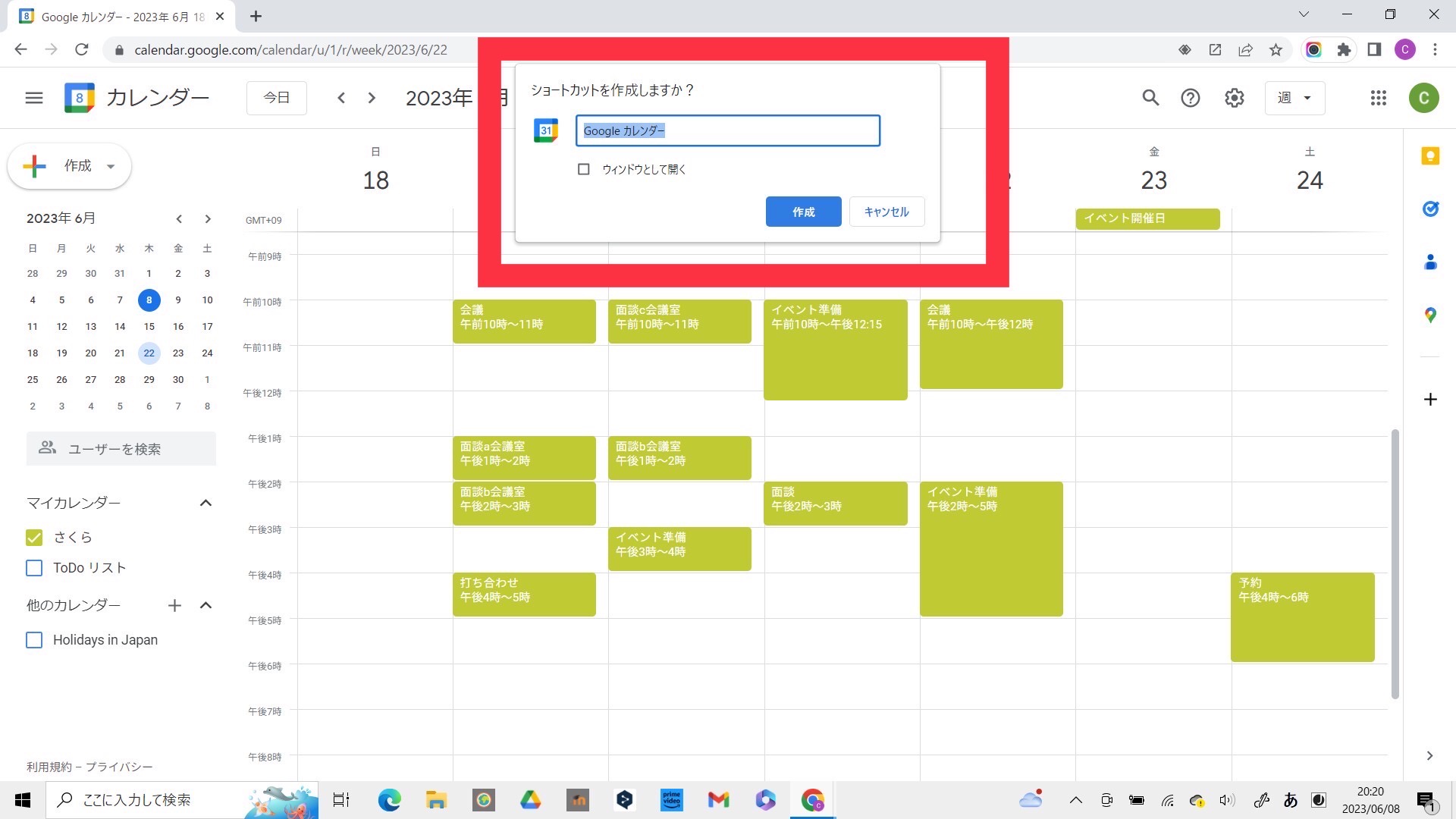デスクトップにGoogleカレンダーのショートカットを追加しておけば、ブラウザから探す手間なくいつでもカレンダーを開けます。