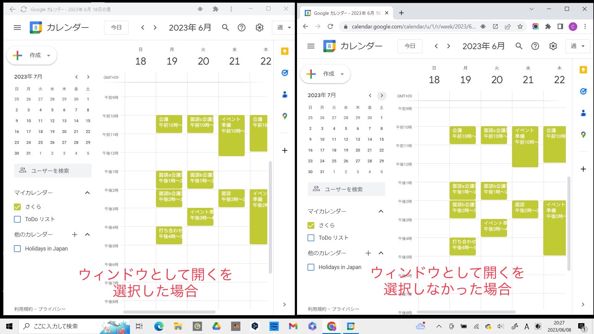 なお、「ウィンドウとして開く」にチェックを入れると、通常のブラウザタブではなく、独立したアプリのような別ウィンドウで開くことができます。お好みで選択してください。