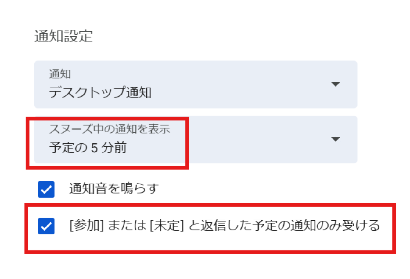 通知を飛ばす時間の設定や、「参加」または「未定」と返信した予定の通知のみ受けることもできるので、使いやすいように設定してみてください。