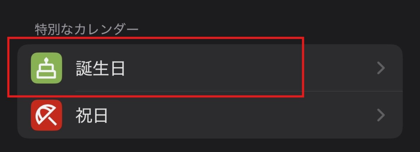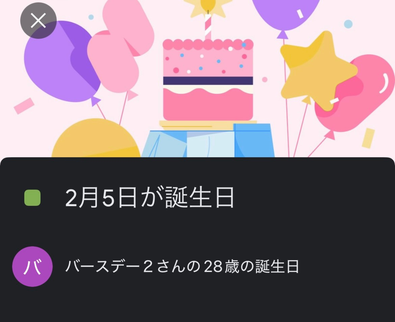 誕生日をコンタクトか連絡先から登録しておくと、予定の前にケーキのアイコンが表示されます。
